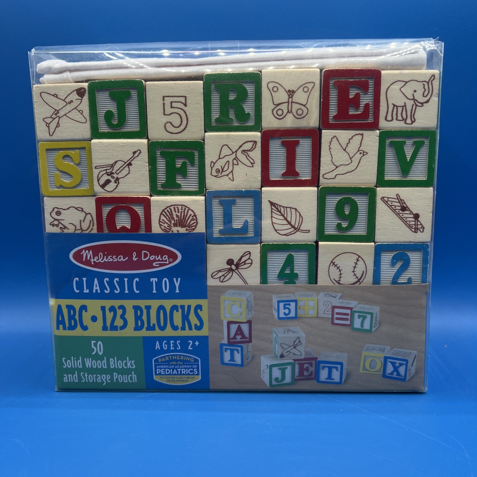 Melissa Doug Wooden ABC/123 Blocks w/Storage Bag Turn Tell Wood Clock NEW
