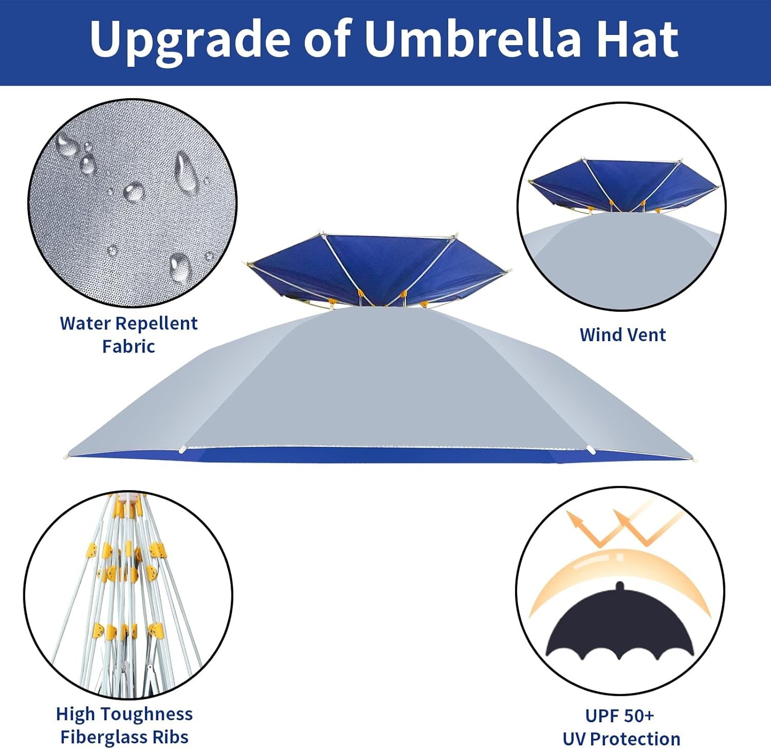 New-Vi Umbrella Hat Folding Adjustable Sun Rain Cap, 37.4 UPF 50 UV Protection