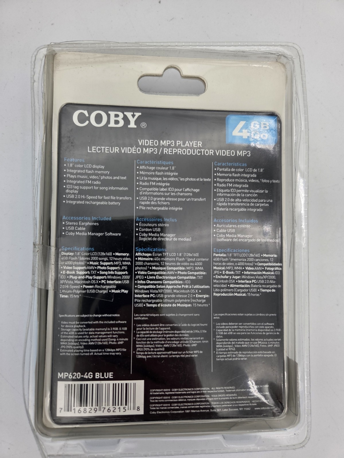 COBY MP620-4G 4GB Go Video MP3 Player 1.8 LCD Screen BLUE
