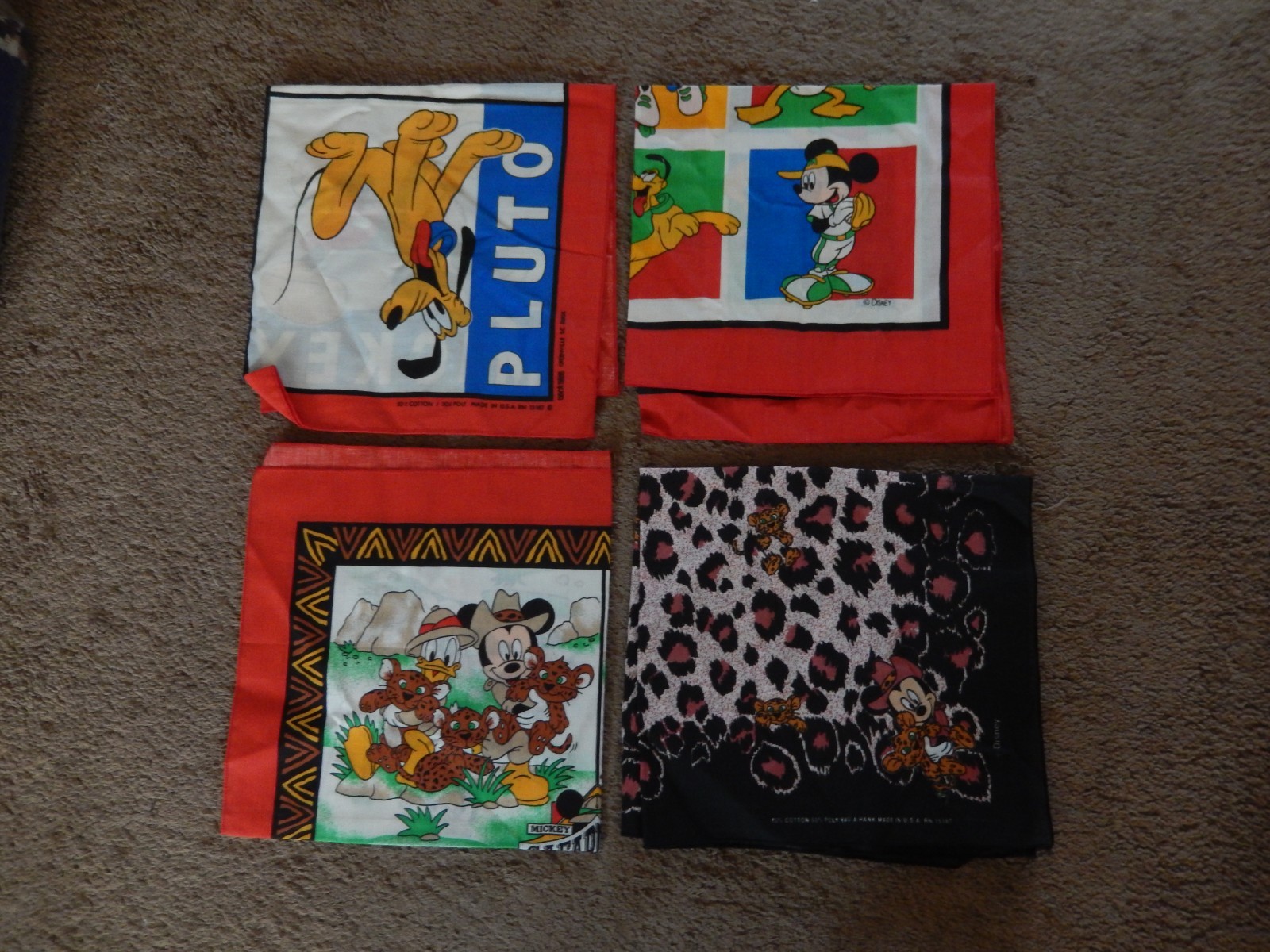 Vintage Walt Disney Mickey Mouse Bandanna Scarf Made In USA Lot of 4 80s EUC