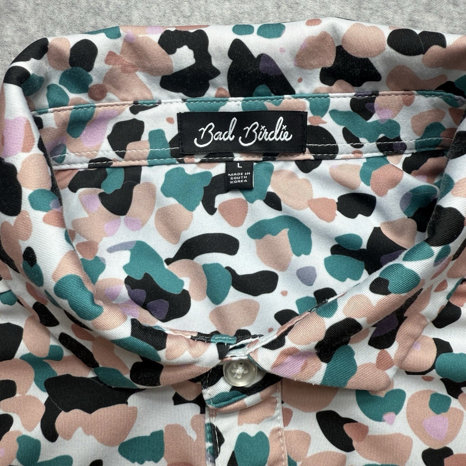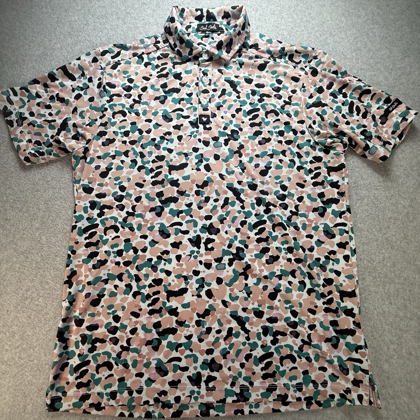 Bad Birdie Polo Shirt Mens Large Multicolor Camo AOP Golf Performance Stretch