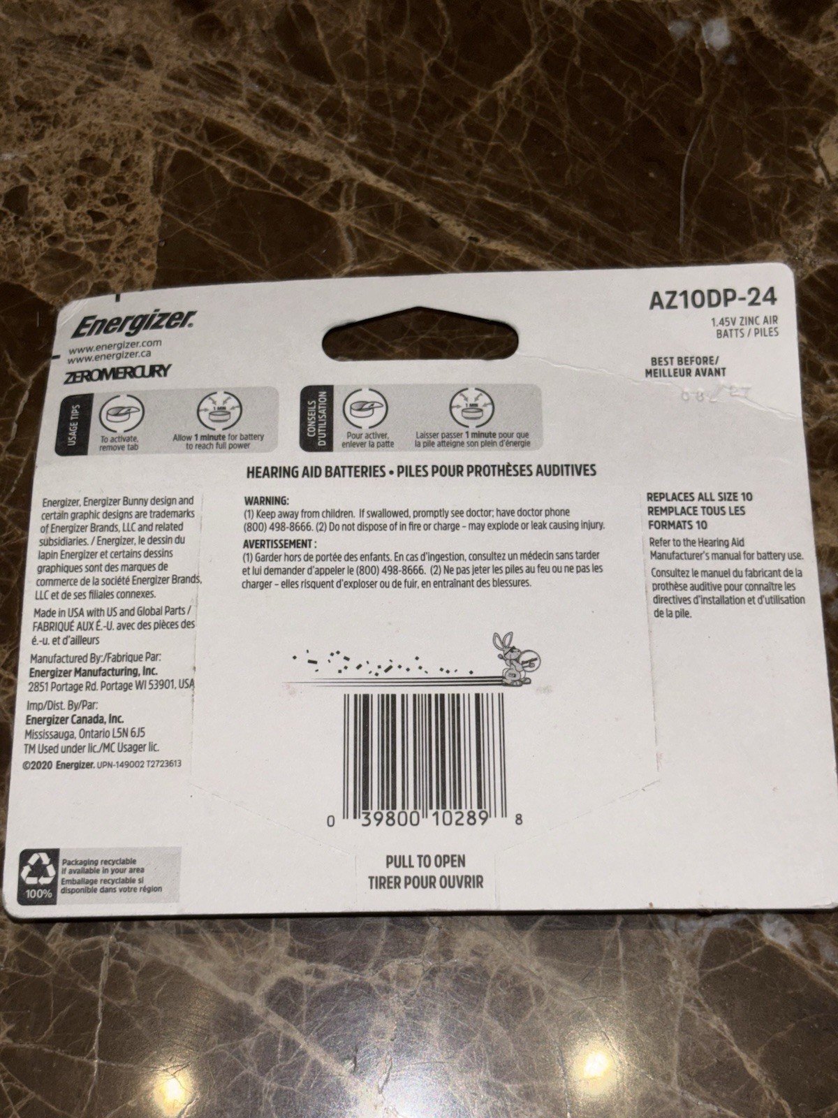 Energizer Hearing Aid Batteries, NEW - Size 10 - Two 24 Packs, 48 Total