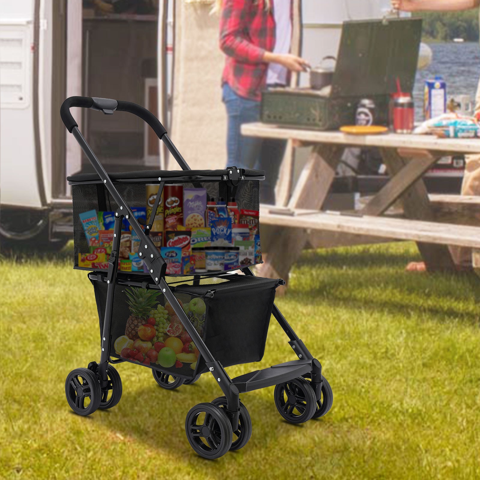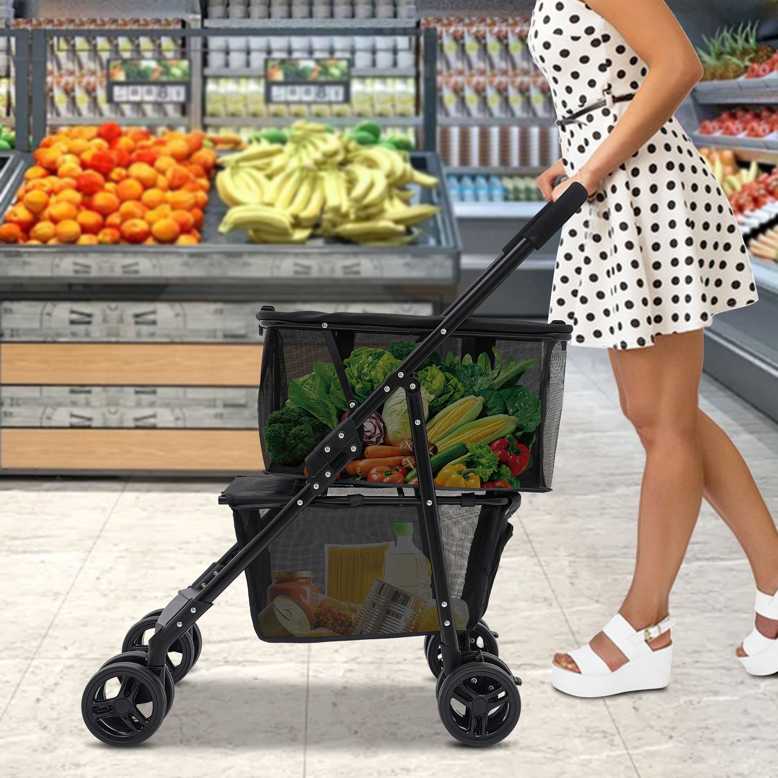 Collapsible Shopping Cart Utility Trolley Cart with Removable Tote Swivel Wheels