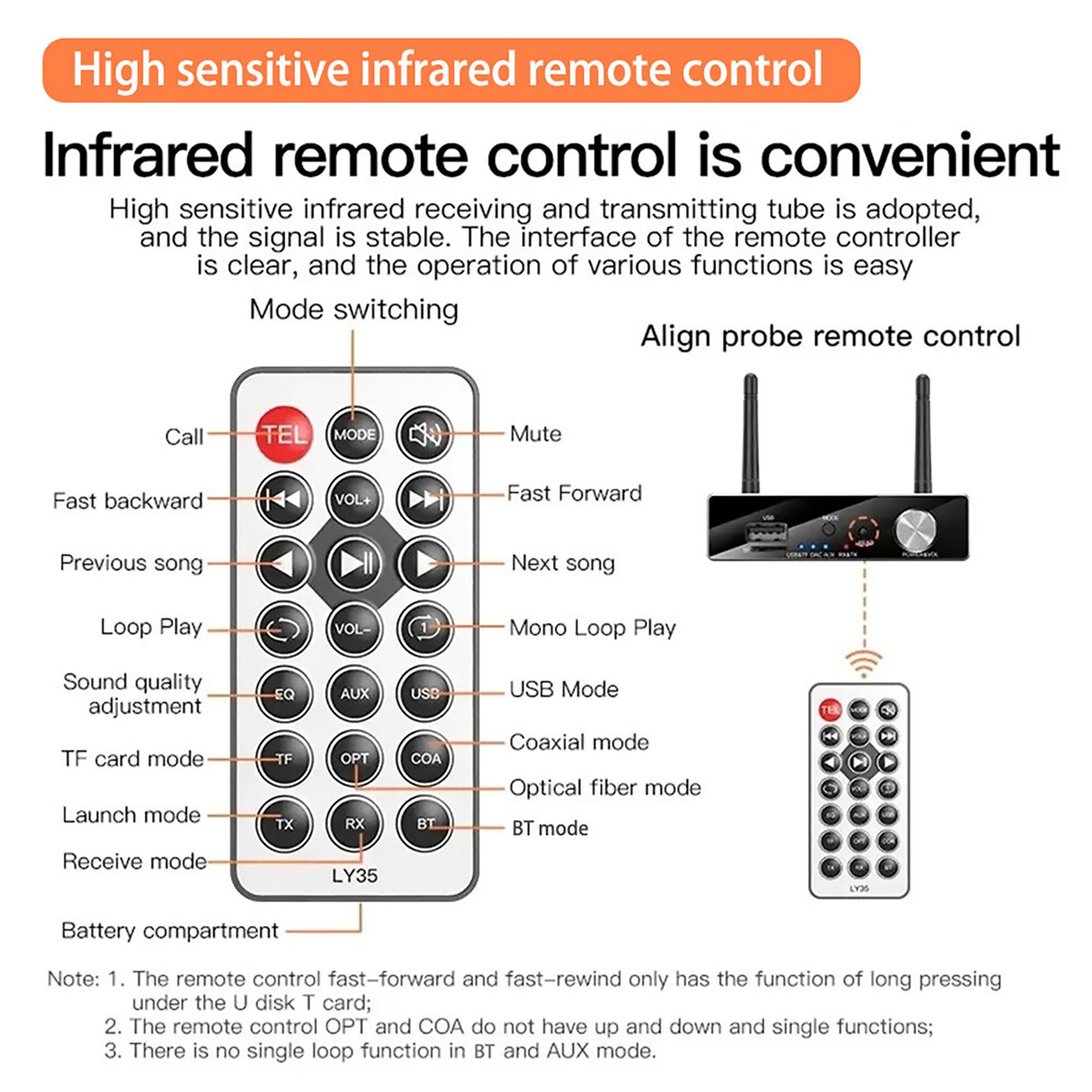 Bluetooth 5.3 Transmitter Receiver Host Audio Adapter With Remote Control