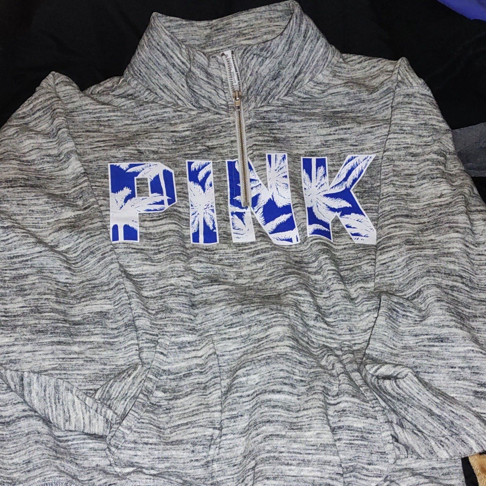 PINK Victoria's Secret Women's Gray Blue Heathered Zip Sweatshirt Pants Set S