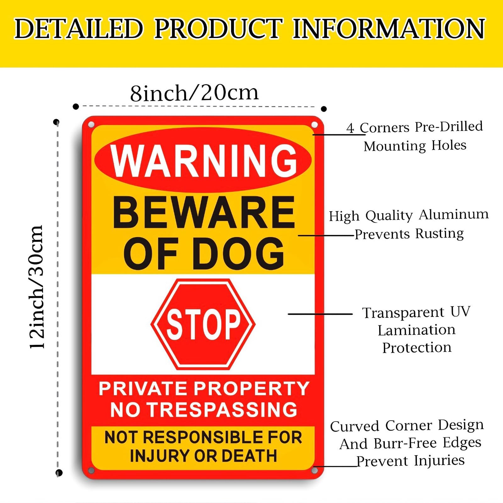 3 Pack Beware Of Dog Sign,8x12 Inches, Reflective Film, AntiRust Aluminum Met...