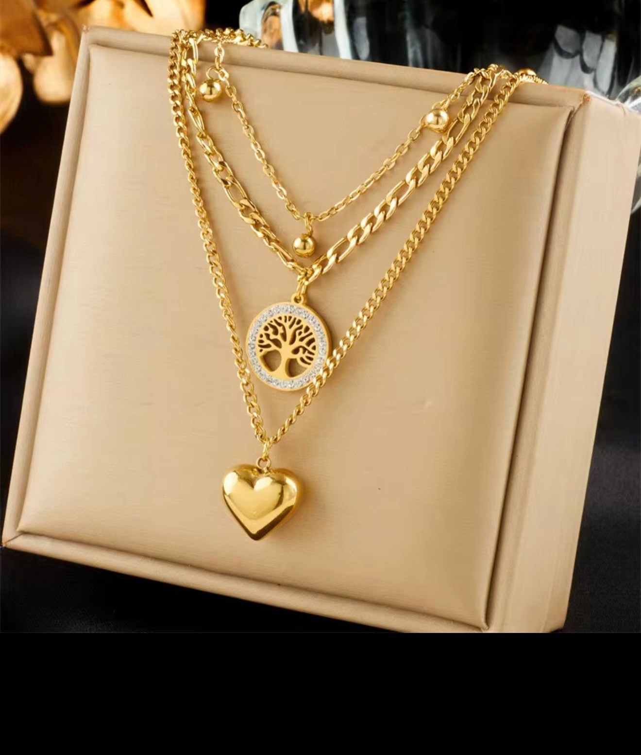 Gold Tone Stainless Steel Jewelry Set Necklace Bracelet Earrings Pendants