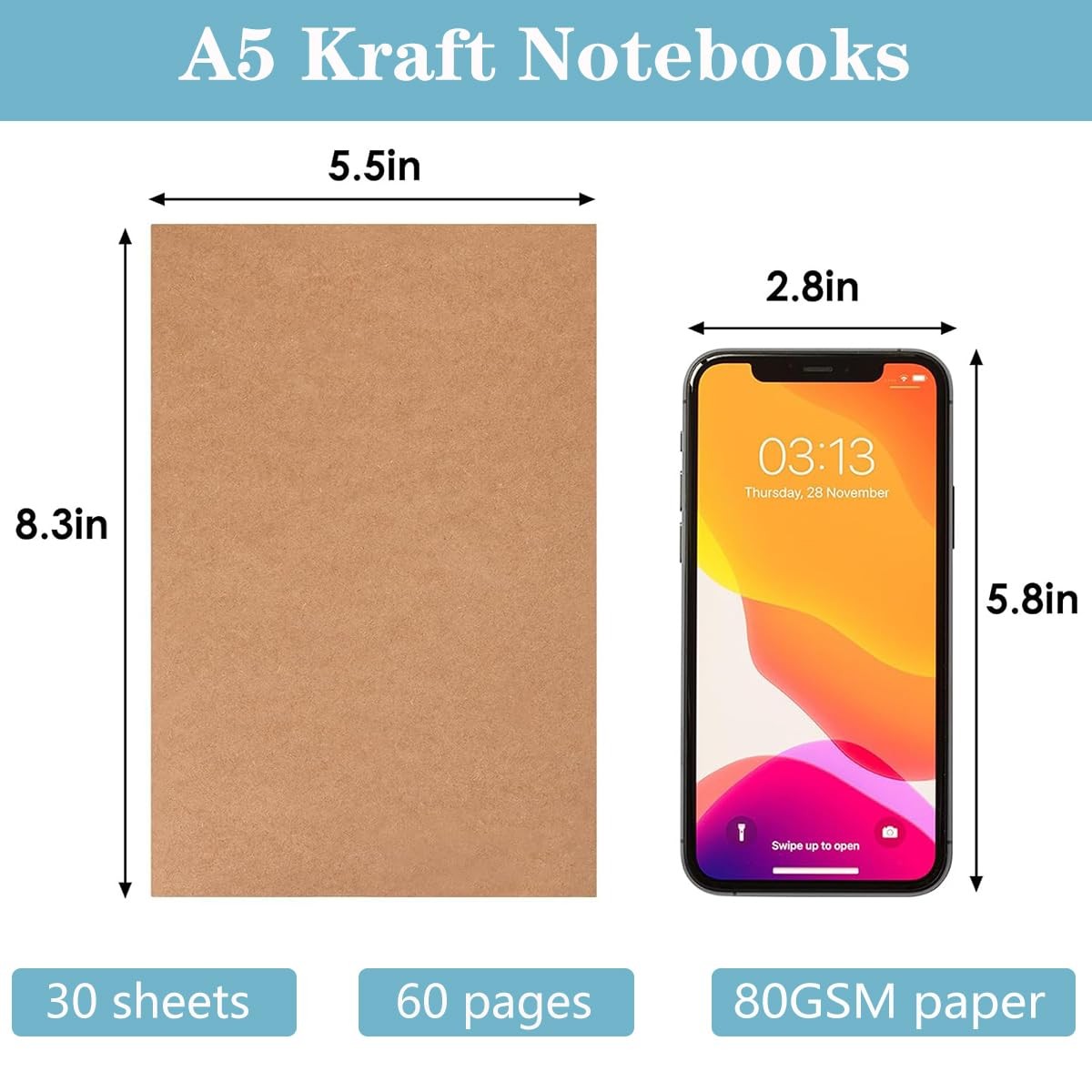 A5 Kraft Notebooks Bulk, Graph Paper Journaling Notebooks, Notebooks for Work, J