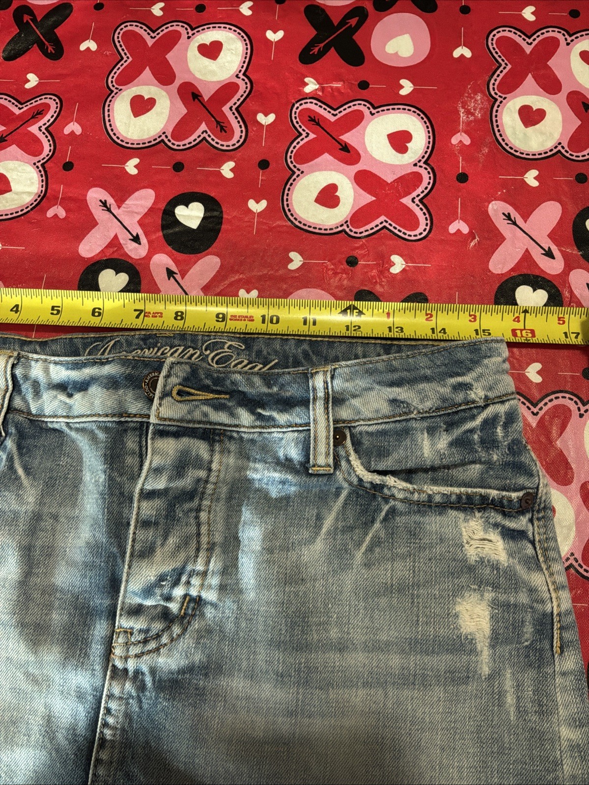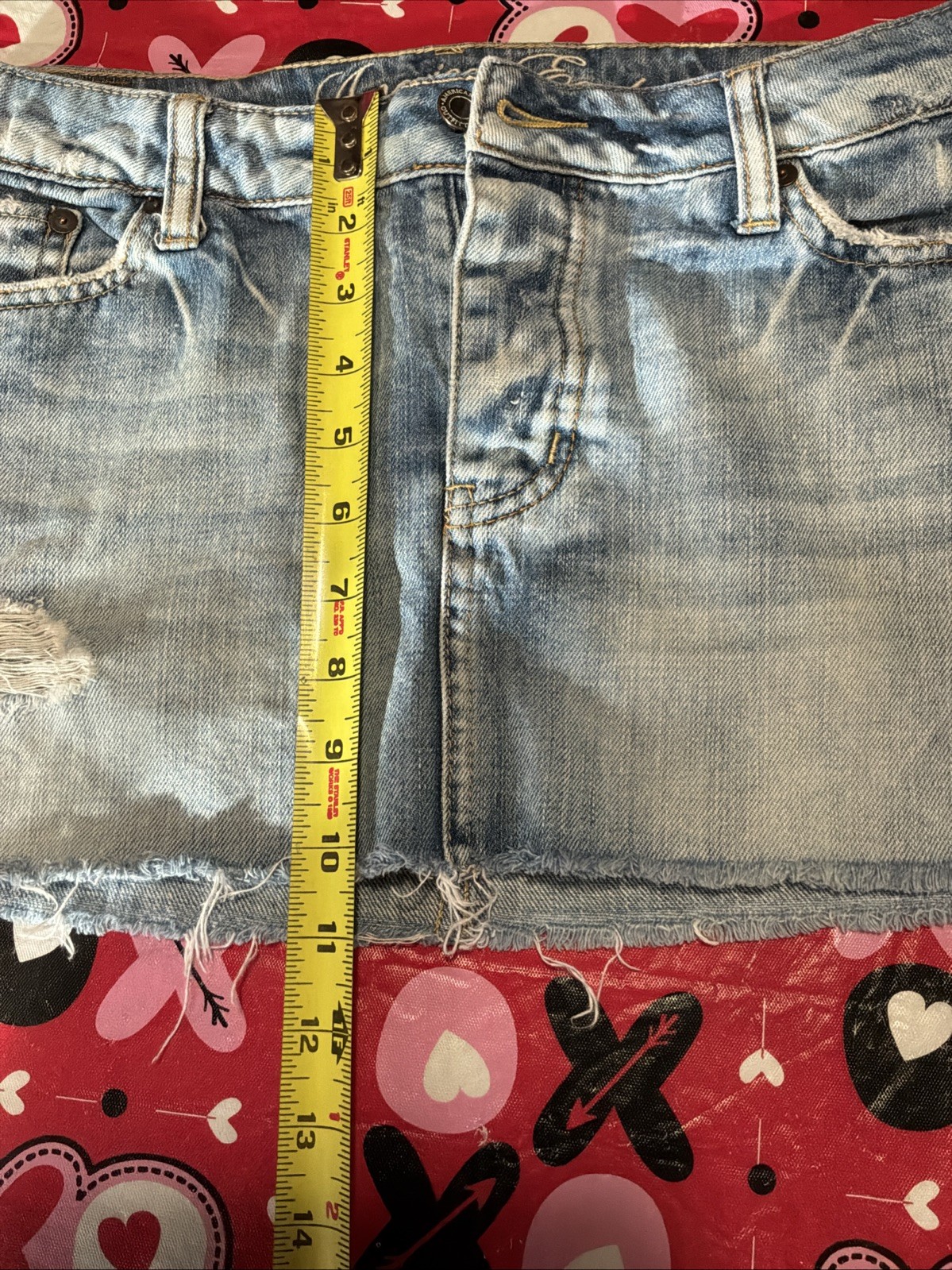 Vintage Y2K American Eagle Denim Mini Skirt Women s Size 4 Blue Distressed
