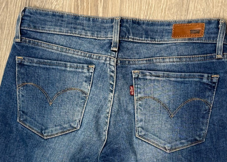 как выглядит Levis Demi Curve 27 Skinny Low Rise Jeans Medium Fade Wash Stretch Blue Denim 32 фото