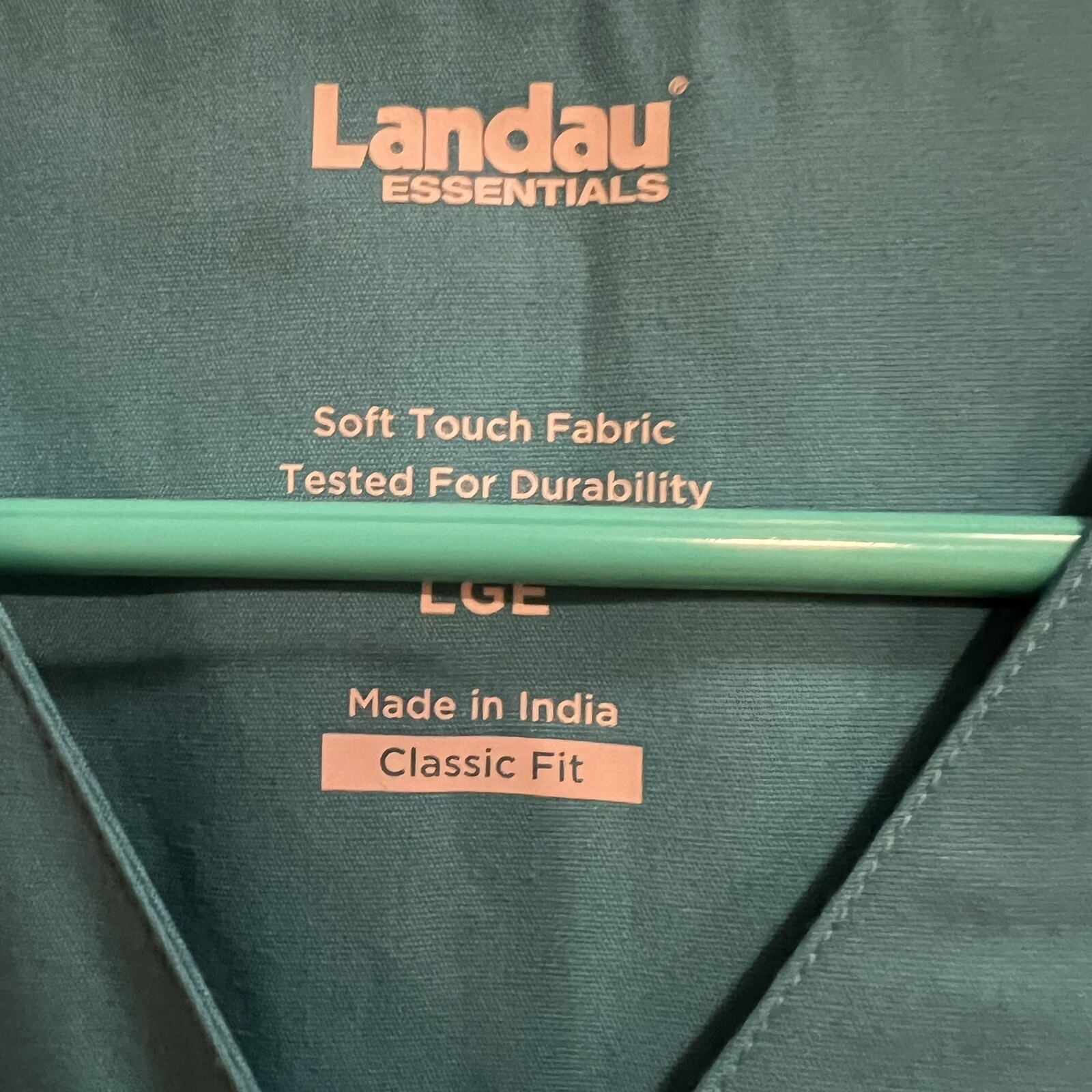 как выглядит NWT Landau Essentials Classic Fit 8232 Teal L Women Scrub Top V-Neck 4-Pocket фото