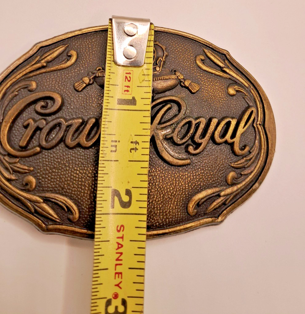 как выглядит Vintage Crown Royal Belt Buckle Brass Tone Raised Logo Textured Oval Western Men фото