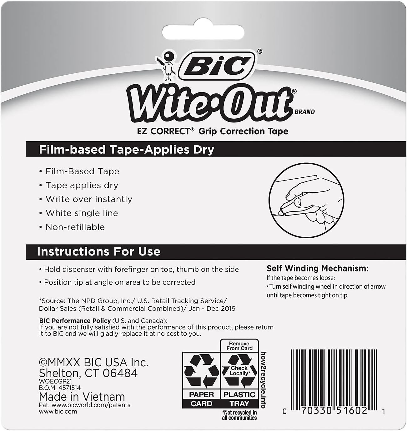 Correction Tape, 19.8 Feet, 2-Count Pack of White Correction Tape, Fast,