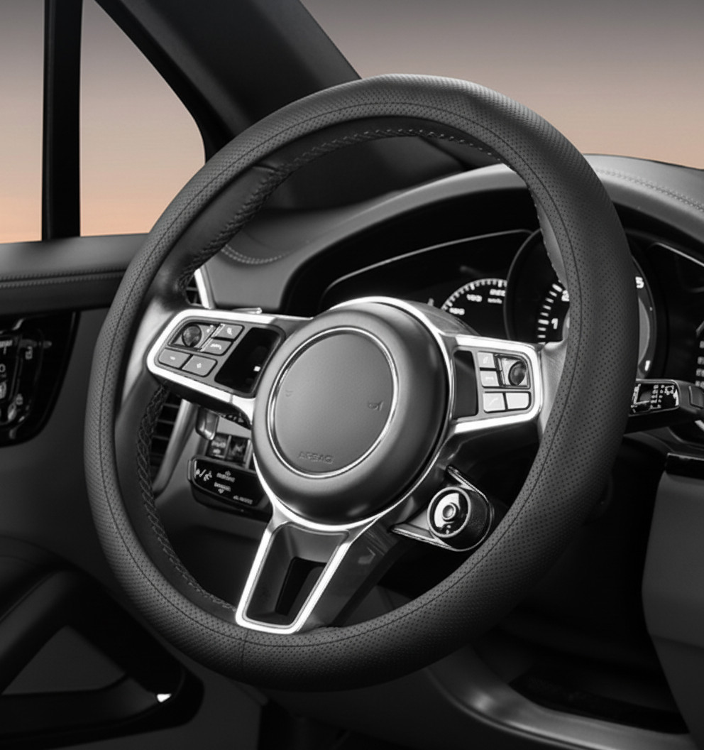 • Black Perforated Nappa Leather Steering Wheel Cover for Most Cars,Quick Install