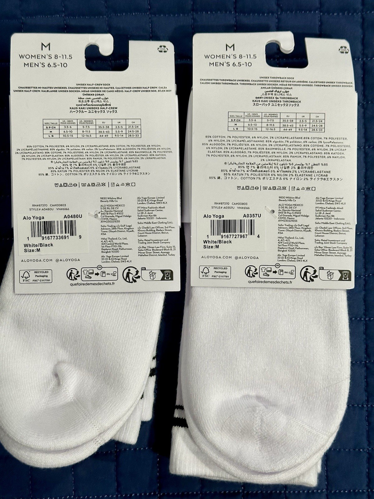 Alo Unisex White Half Crew Throwback Sock Bundle 2 pair bundle Size Medium NEW