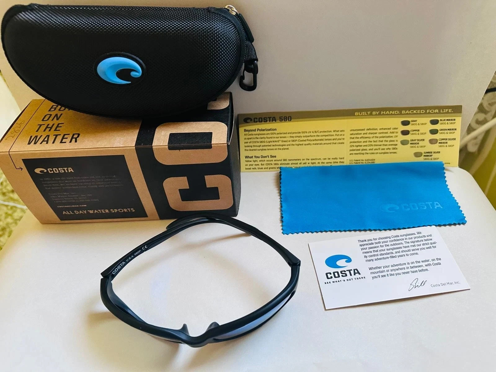 Costa Del Mar Brine 580P Polarized Black Frame Blue Mirror Sunglasses