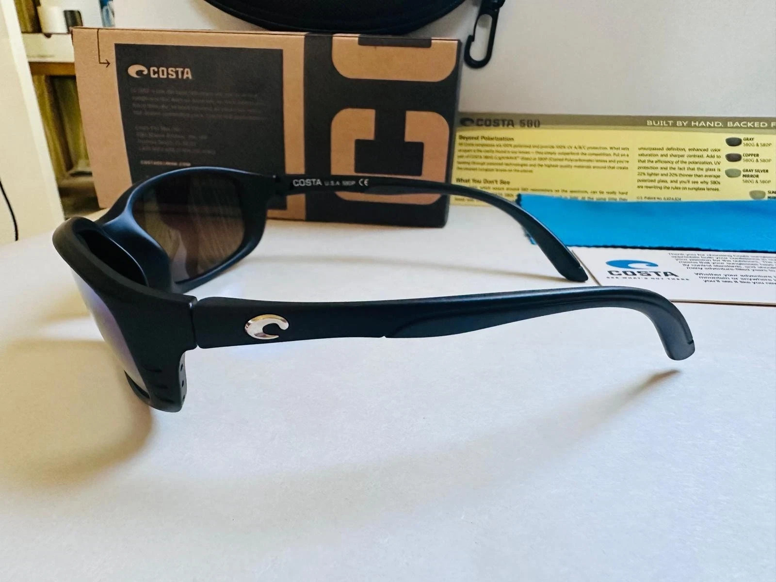 как выглядит Costa Del Mar Brine 580P Polarized Black Frame Blue Mirror Sunglasses фото