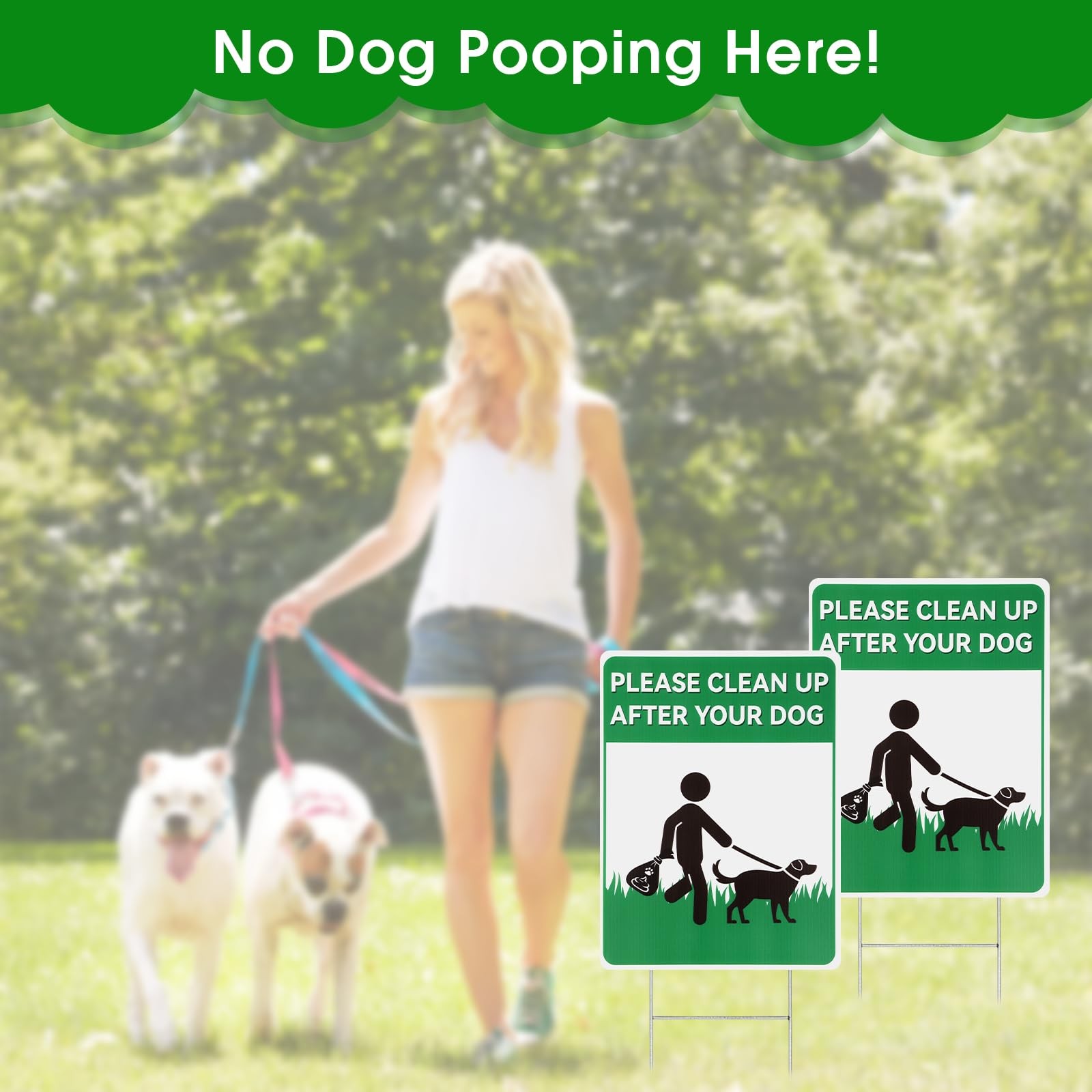 2 Pack Clean up After Your Dog Signs, 12.6 x 9.5 No Pooping Dogs Signs with...