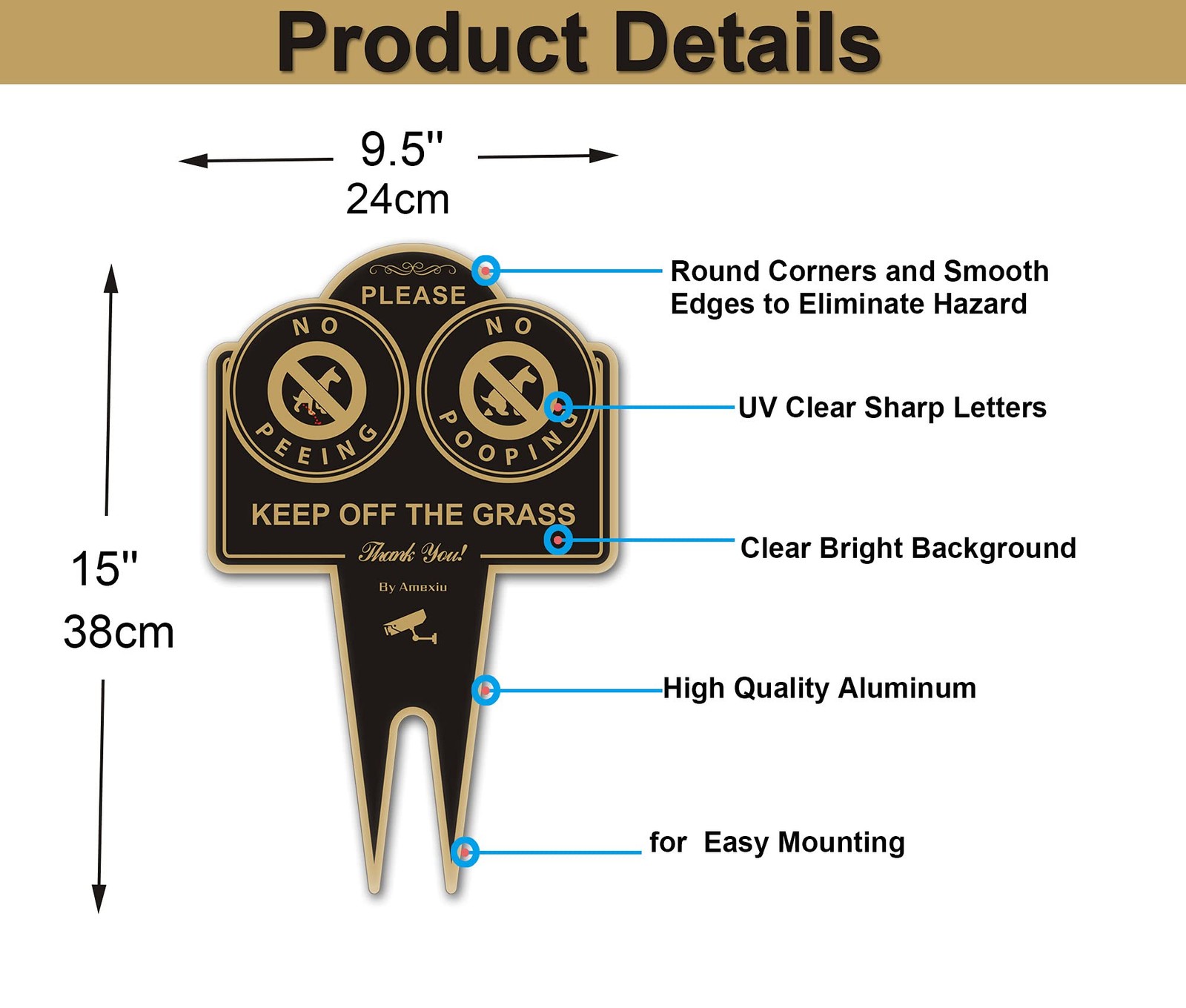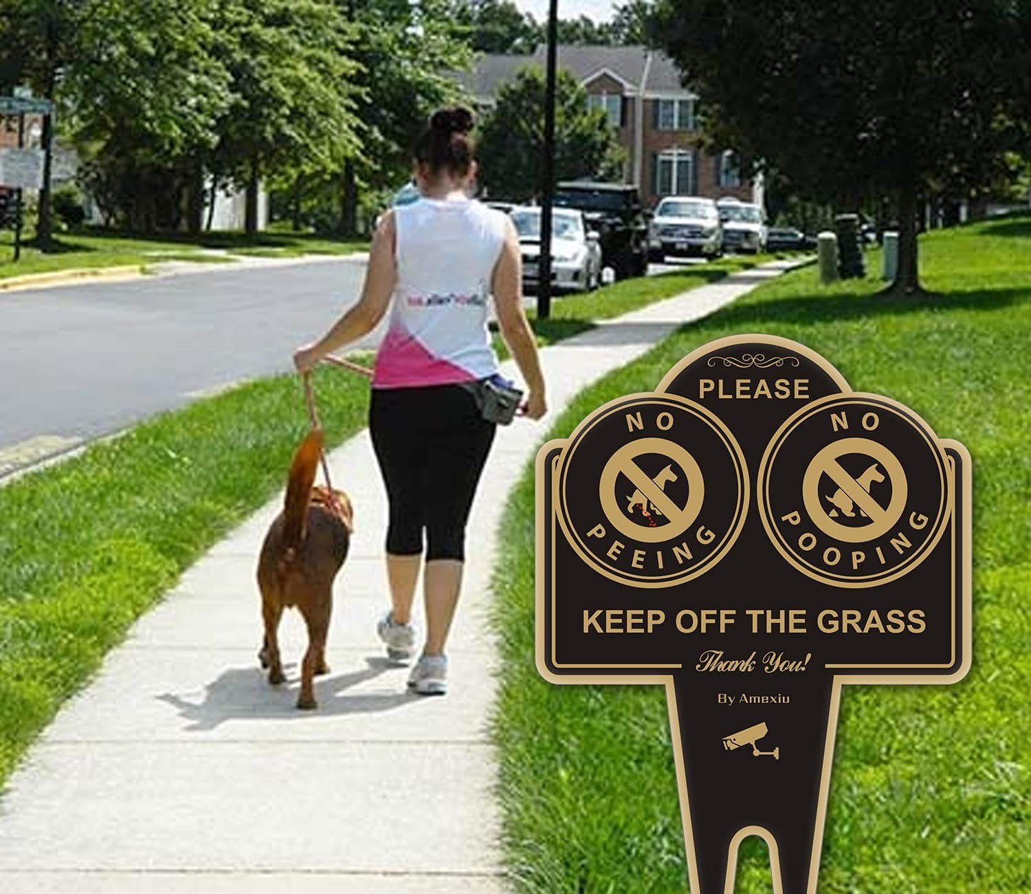 Amexiu No Pooping No Peeing Dog Sign, Keep Dog off Grass Yard Lawn Sign, Doub...