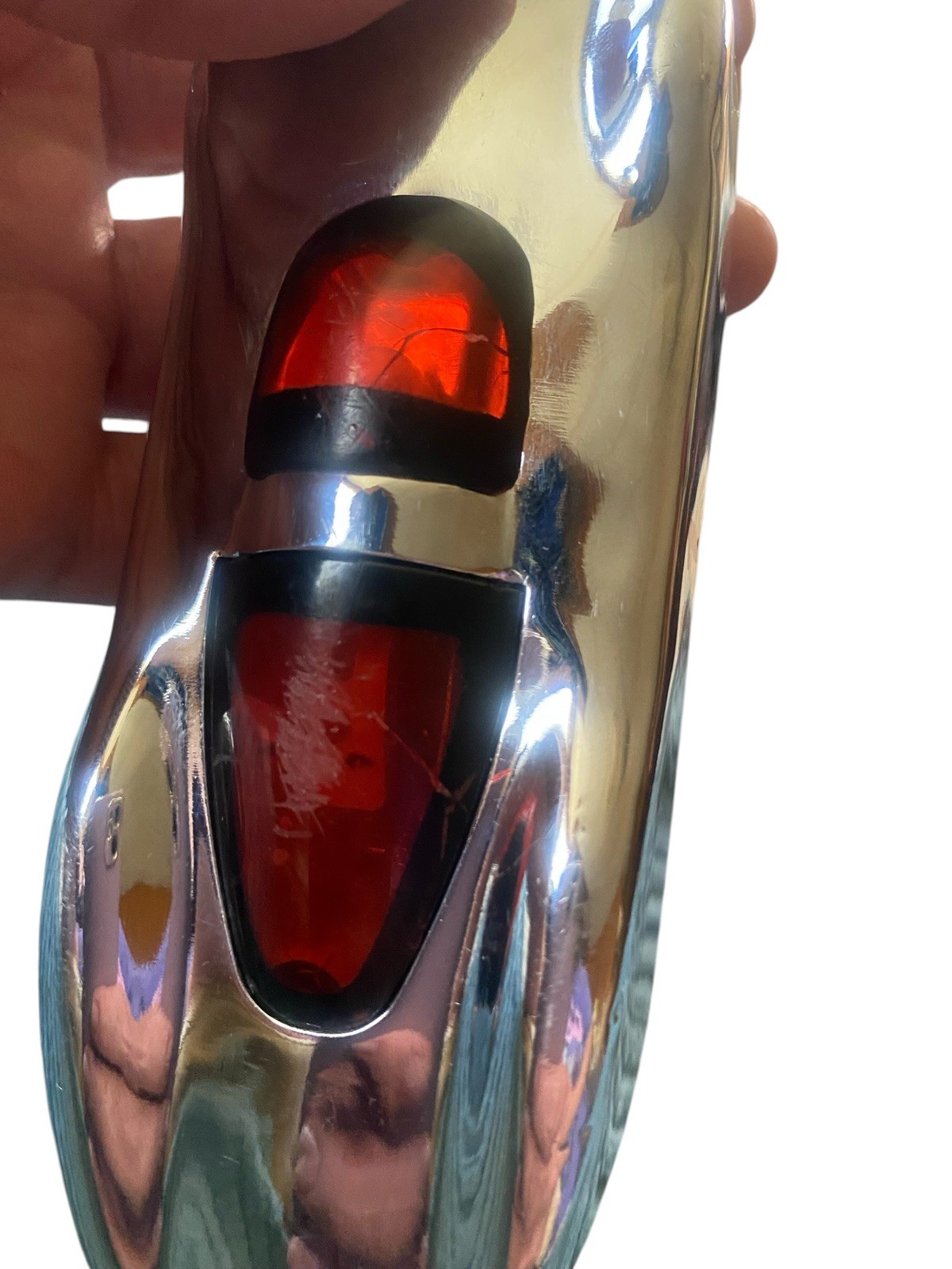 как выглядит Schylling Vintage Metal Wind-Up Race Car 31 German Flag Silver Toy-damage фото