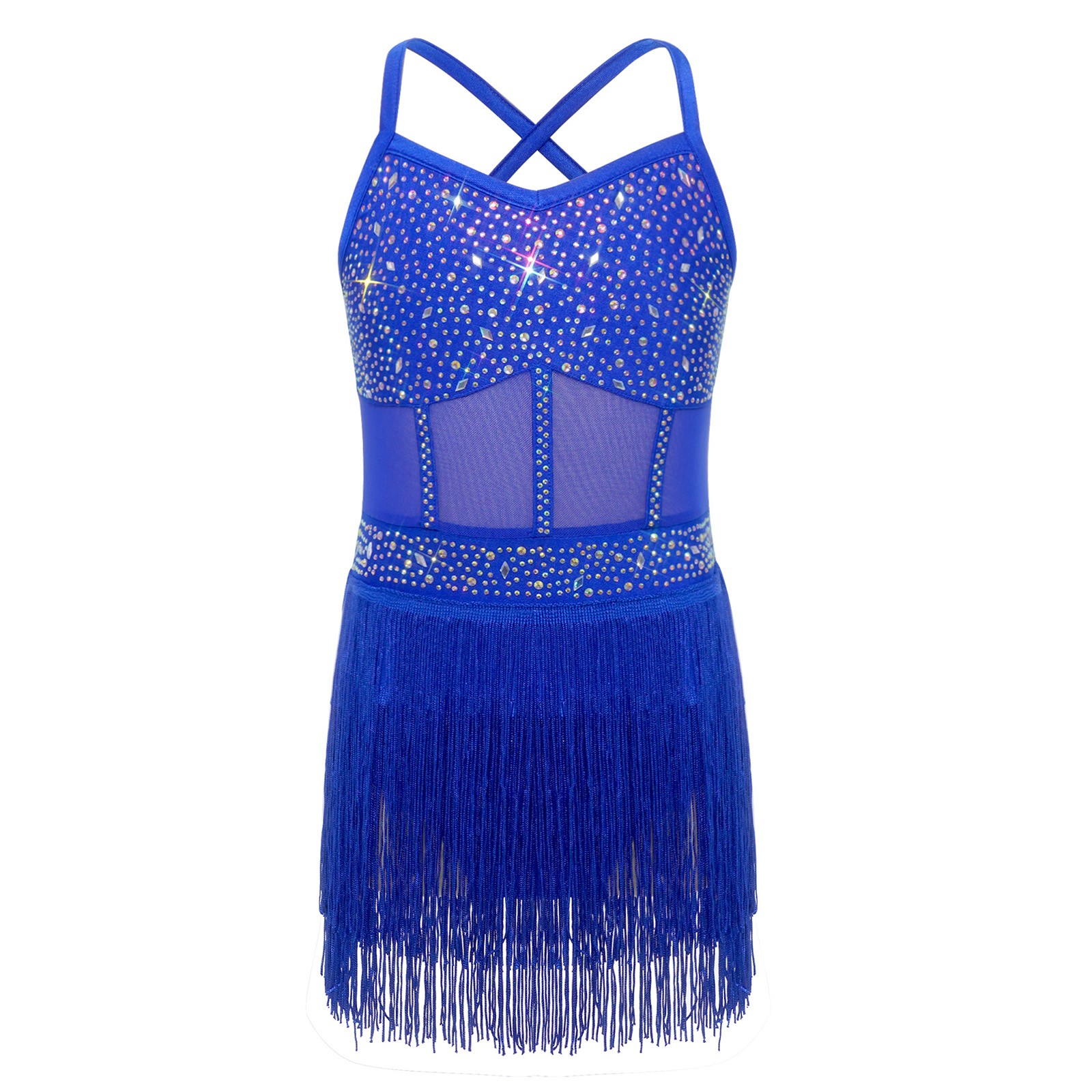 Girls Figure Skating Skirted Leotard Crisscross Tassels Latin Tango Dance Dress