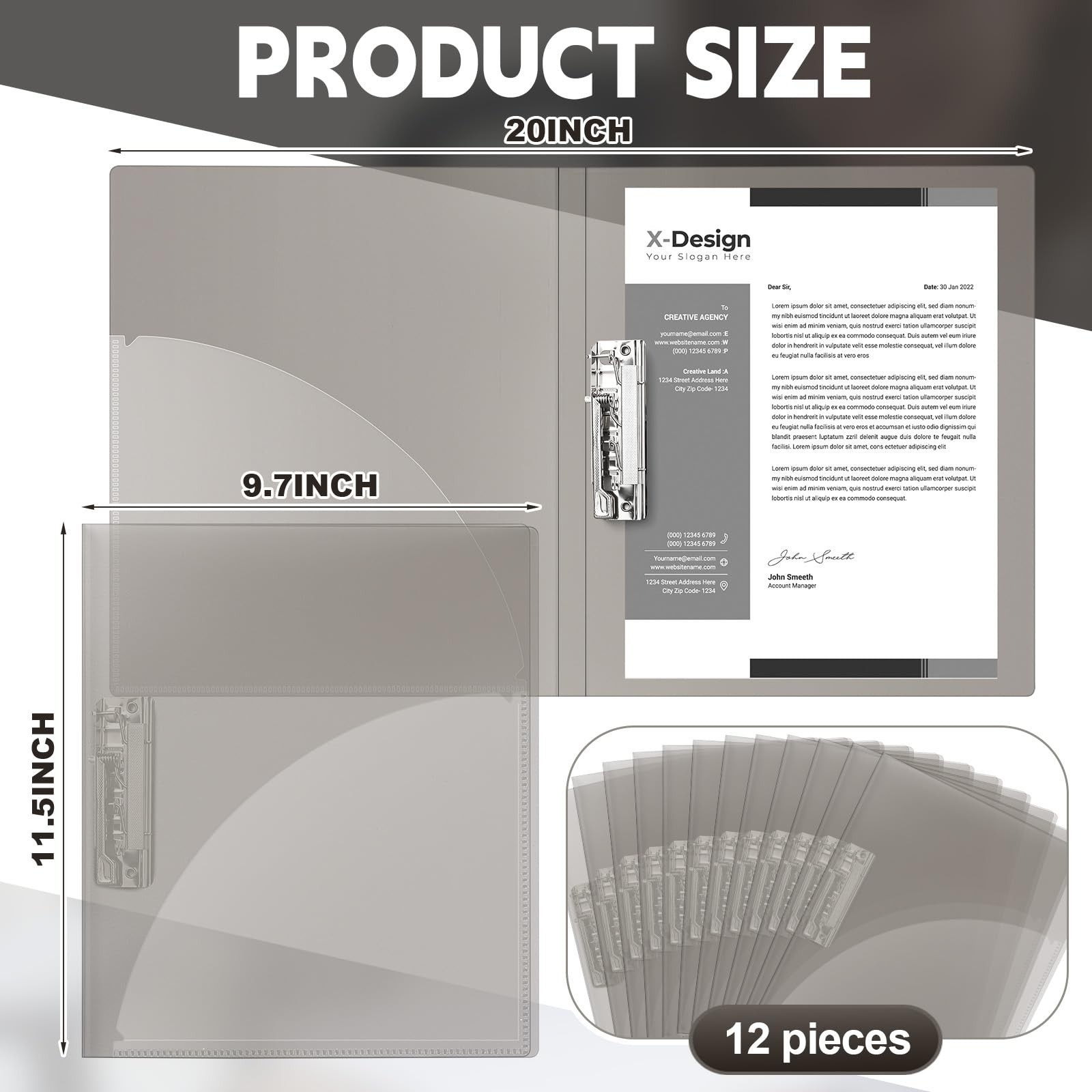 12 Pack Punchless Clamp Binder Folder 8.5 x 11 Inch Ringless Binder Holds wit...