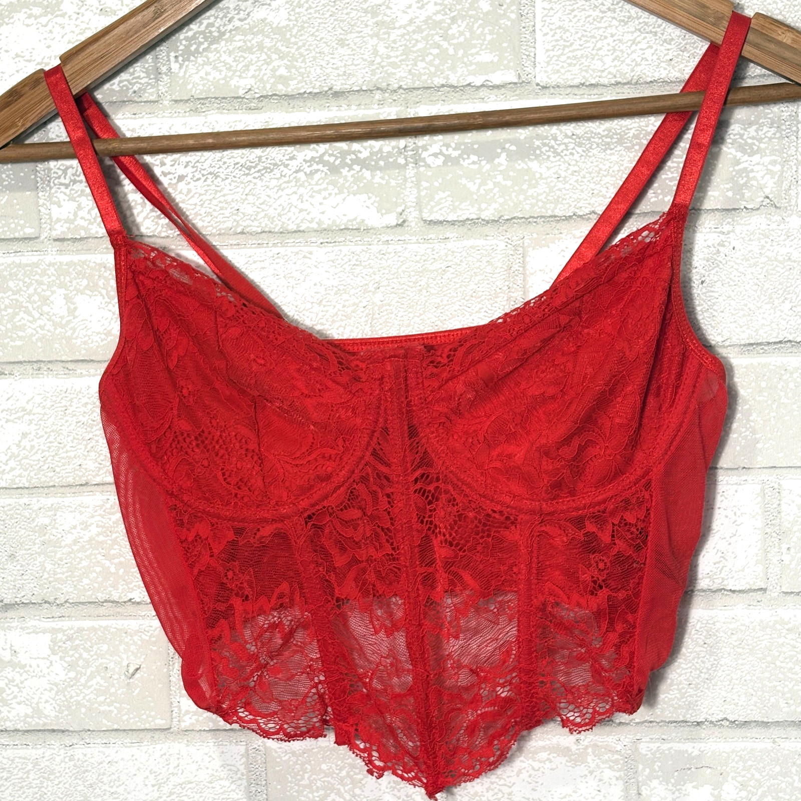 как выглядит Red Lace Boned Corset Top Medium 6 Sheer Bustier Y2K Coquette Vamp Cosplay фото