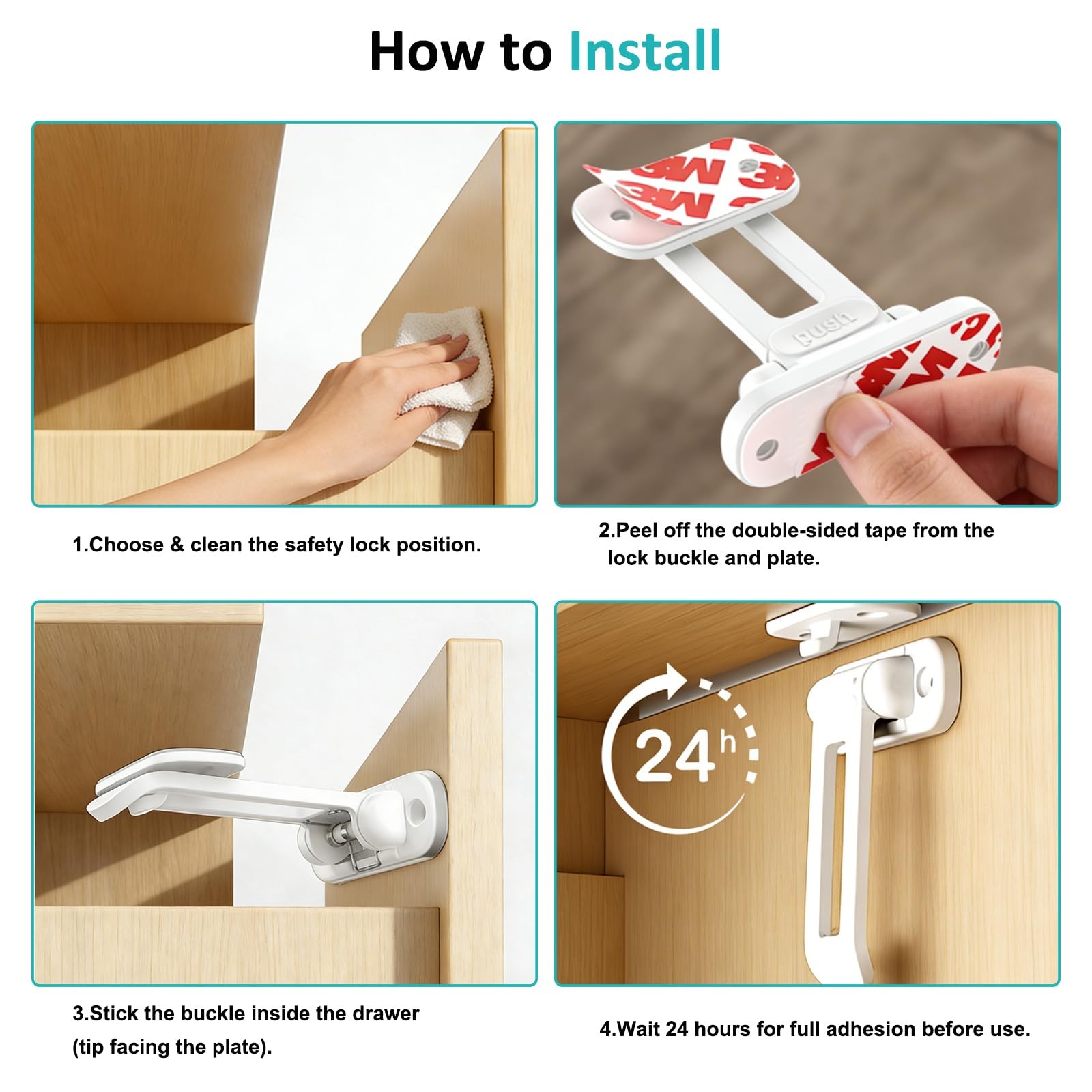 10 Pack Baby Proofing Cabinet Locks - No Drilling Required Child Proof Locks ...