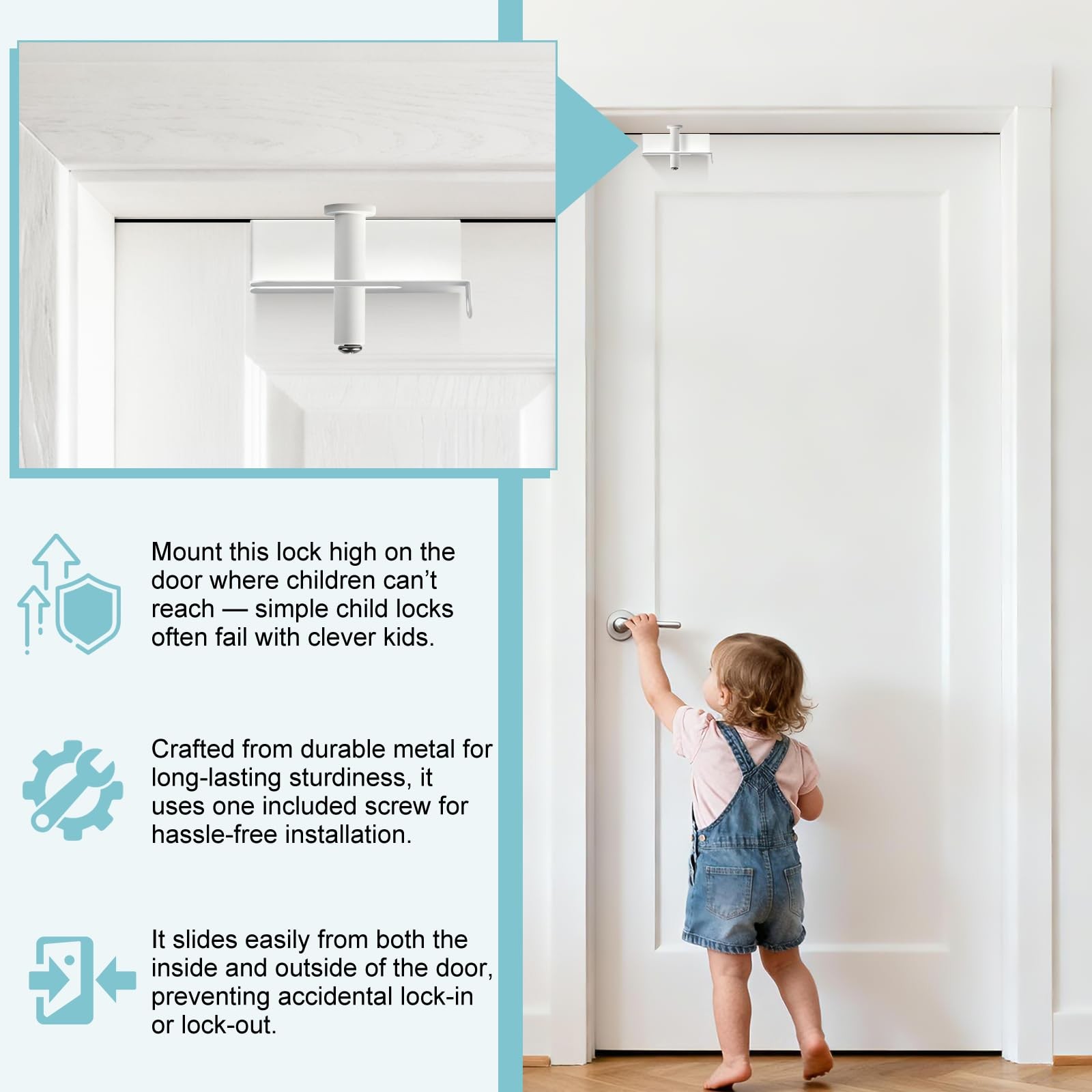Child Safety Door Top Lock, Adjustable Metal Child Proof Door Top Locks for I...