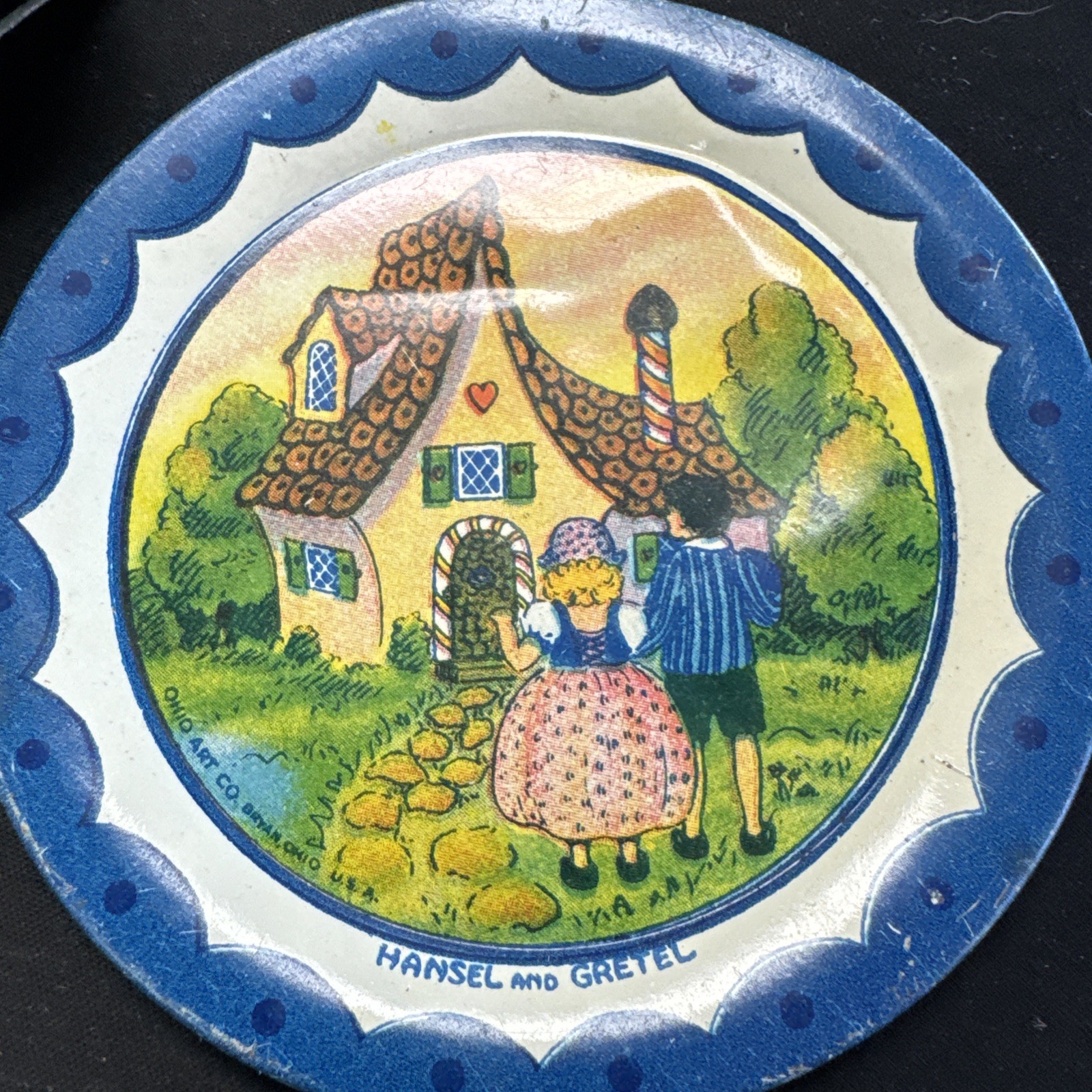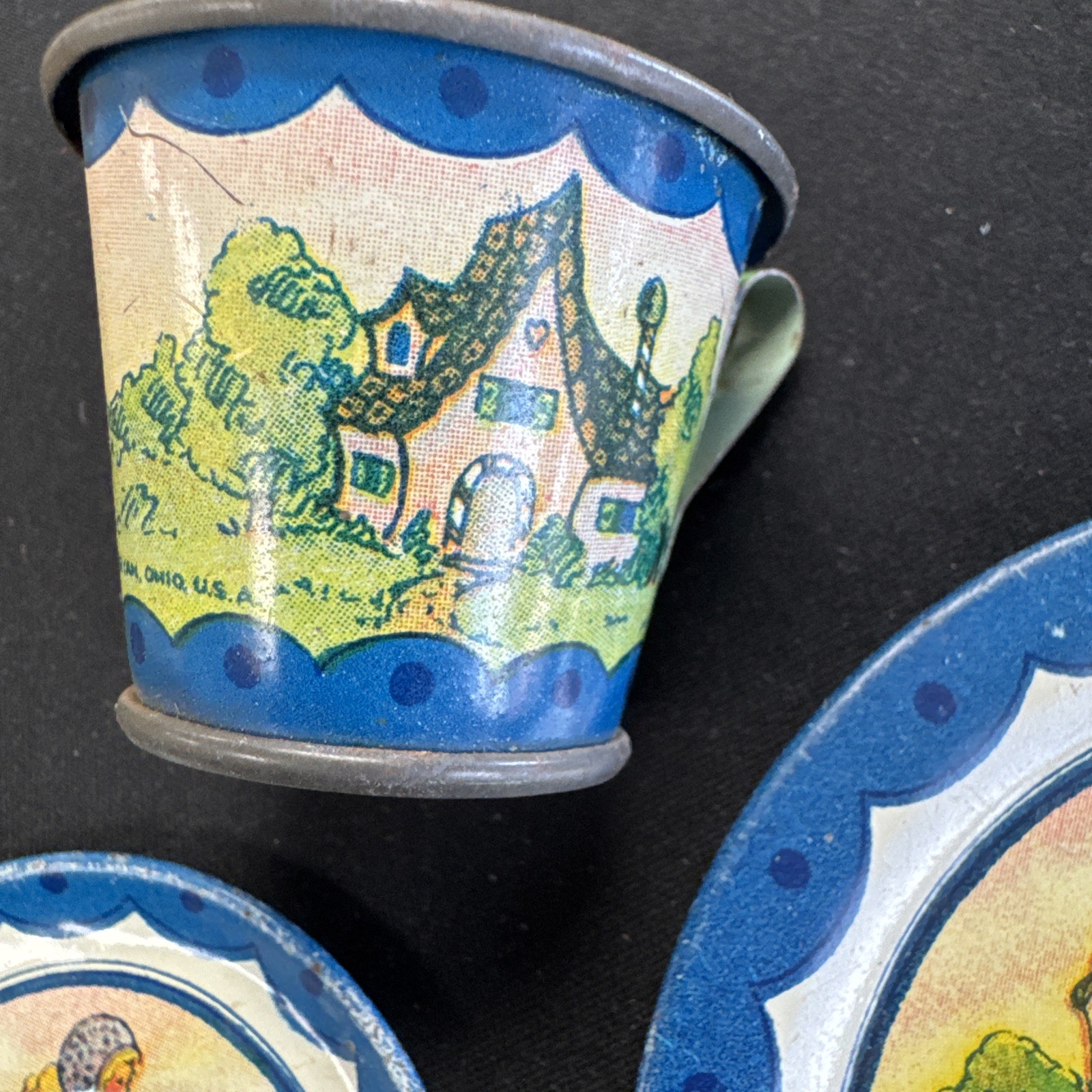 как выглядит Vtg Tin Hansel Gretel Tea Set Plates And Cup Children Toy фото
