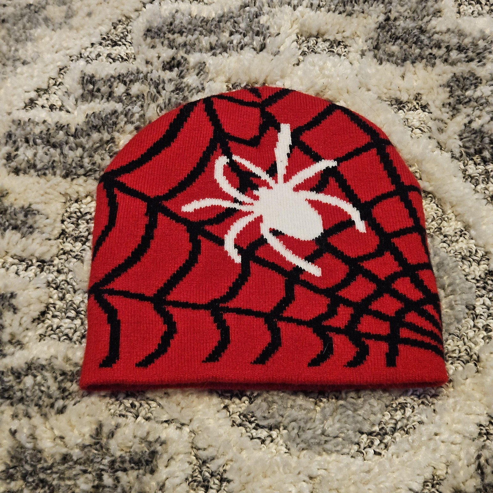 Spider-Man Hat Beanie Fitted Mens Small/Medium Red Black Spider Web Marvel
