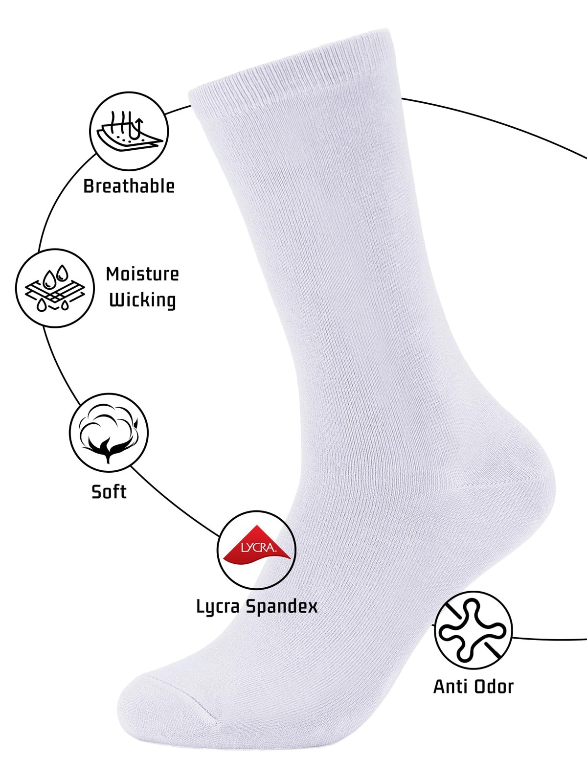 Forony White Dress Socks for Men Bamboo Rayon Anti Odor 8-13, 1 Pack