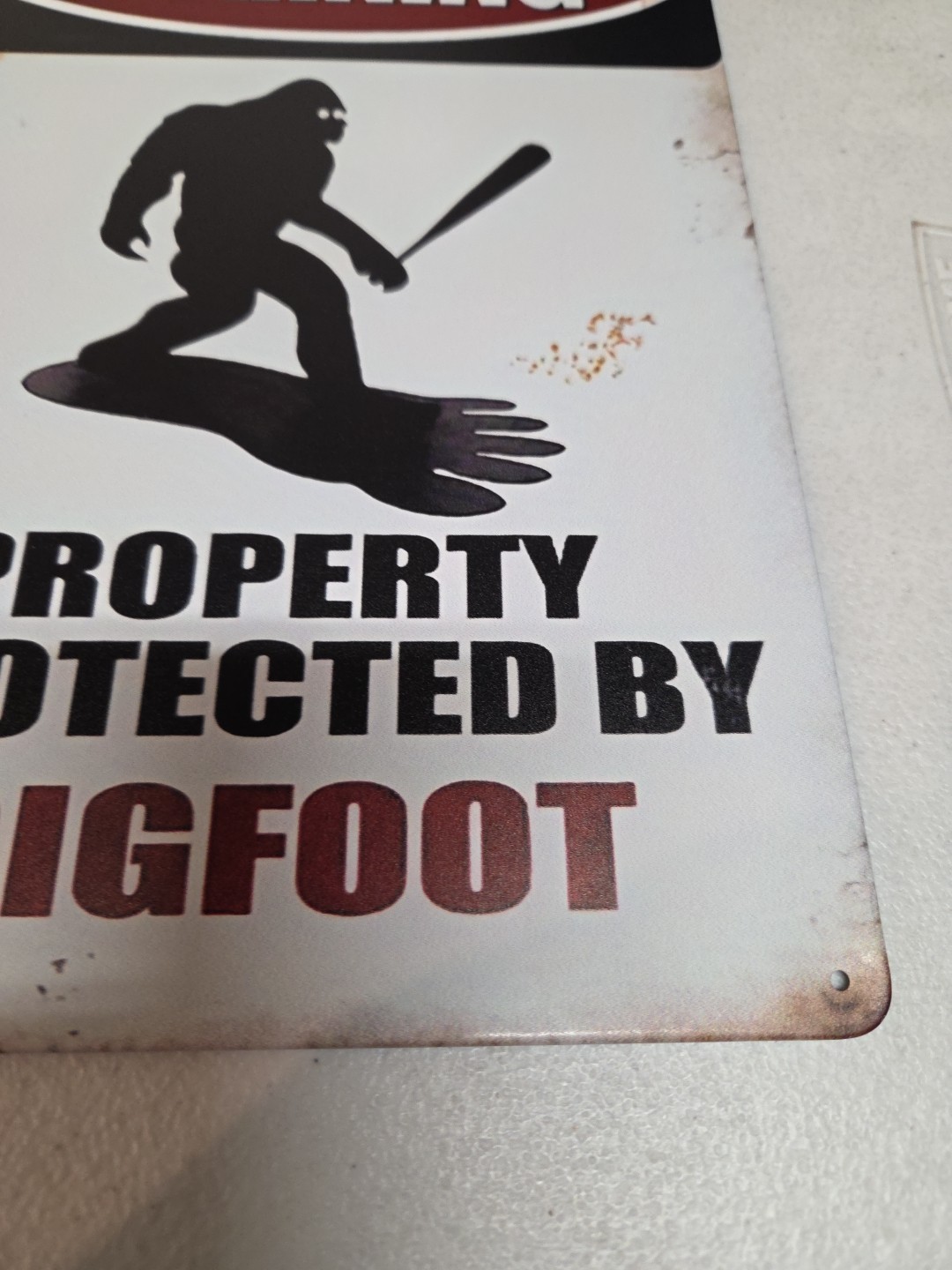 Warning Property Protected By Bigfoot Rustic-looking 8x12 Metal Sign Humor Funny