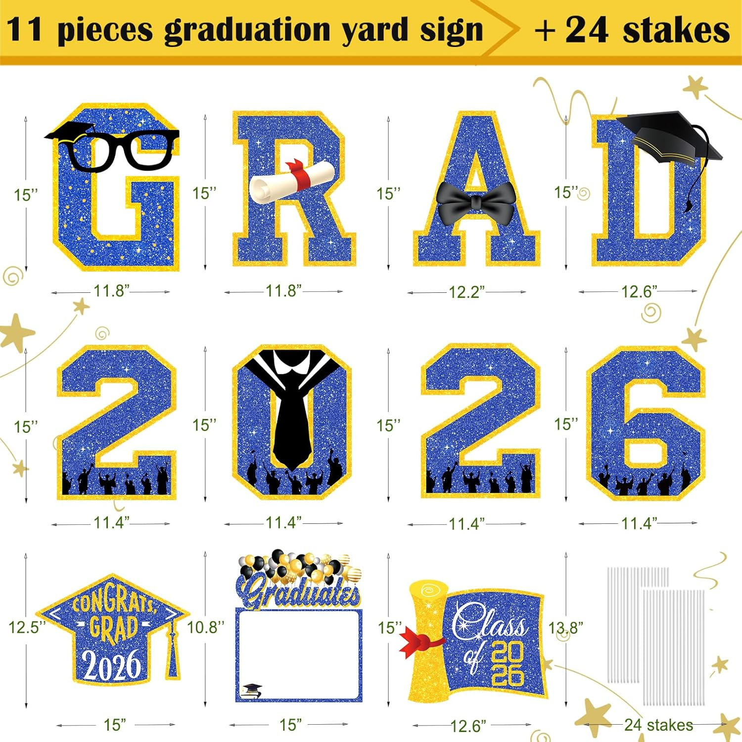 как выглядит Graduation Decorations 2026 Blue and Gold, 11 Pcs Graduation Yard Signs Class of фото