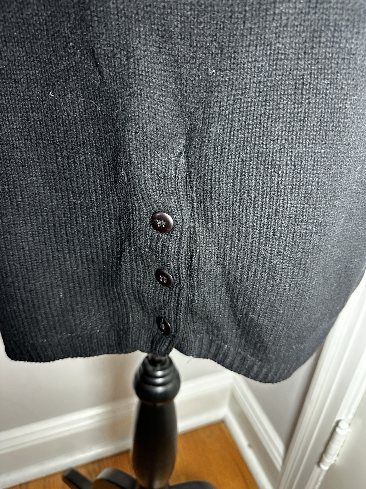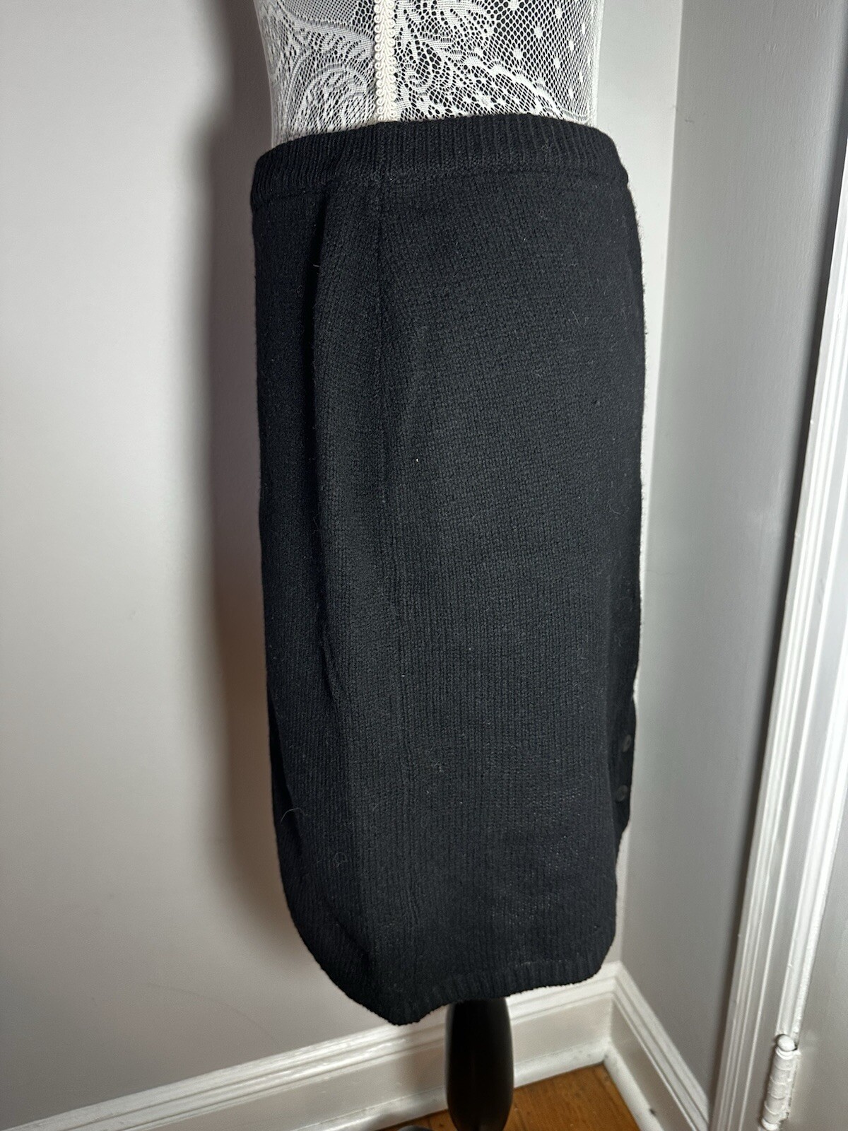 как выглядит VTG 80 s Sz: L GAP 100 Italian wool Black Minimalist Pencil Skirt Button Accent фото