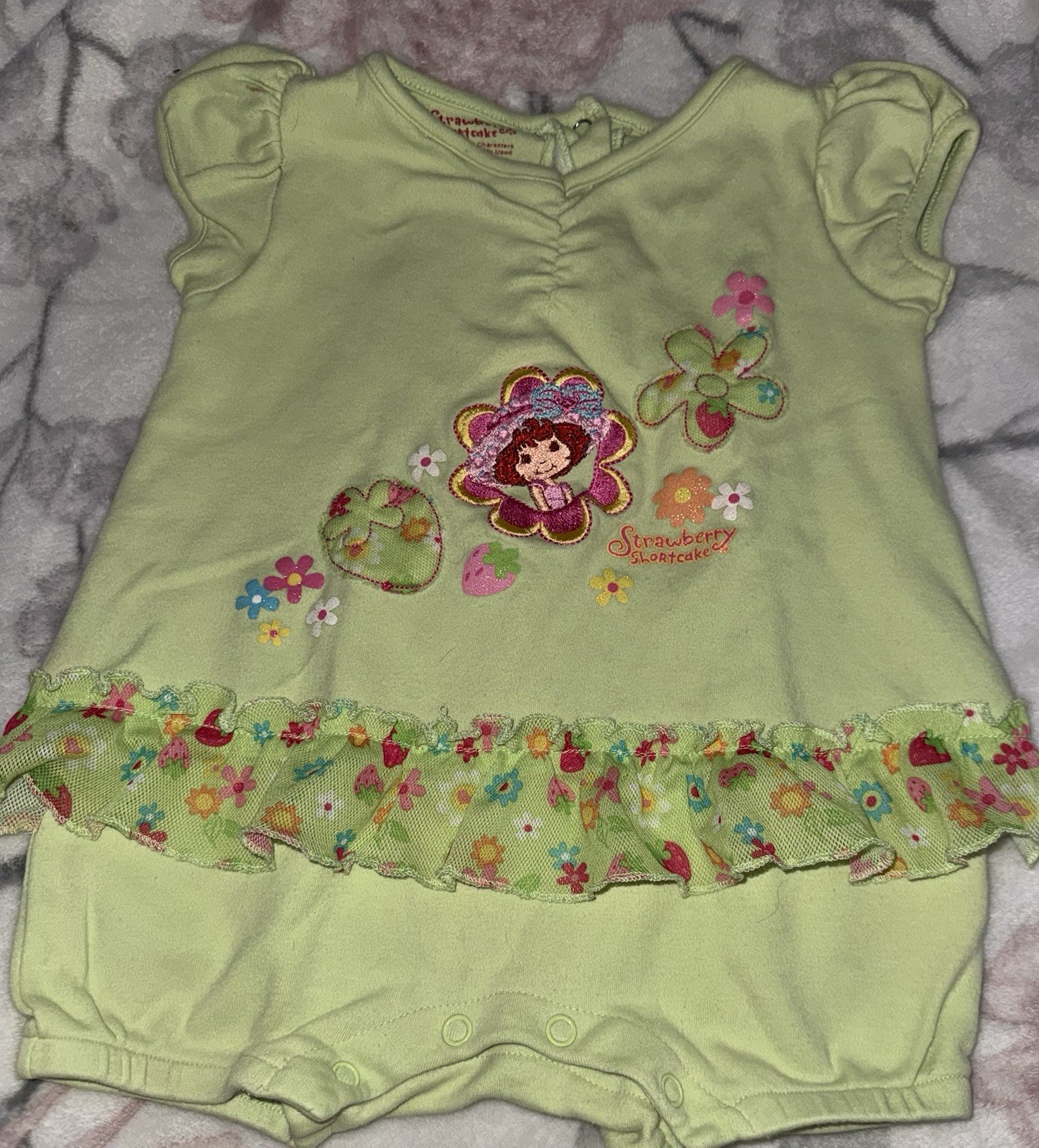 Strawberry Shortcake Light Green Floral 18M Cotton Romper One-Piece Ruffle