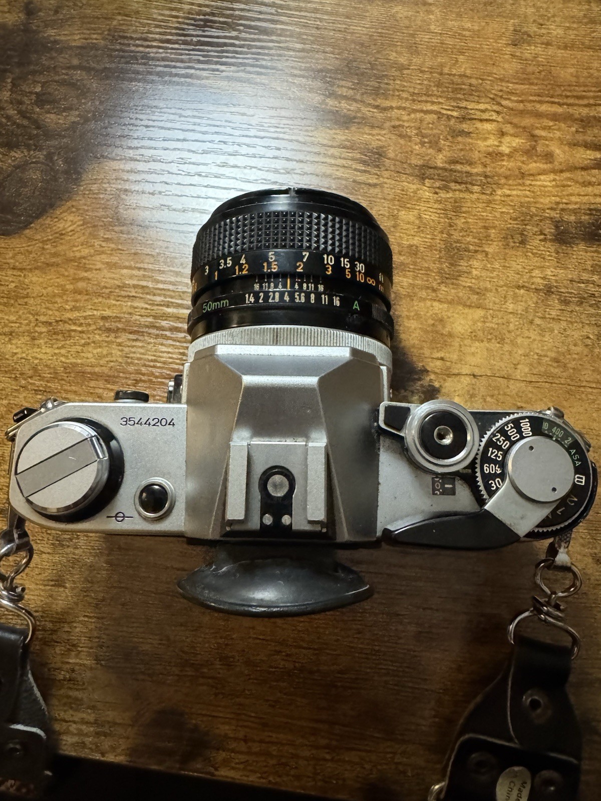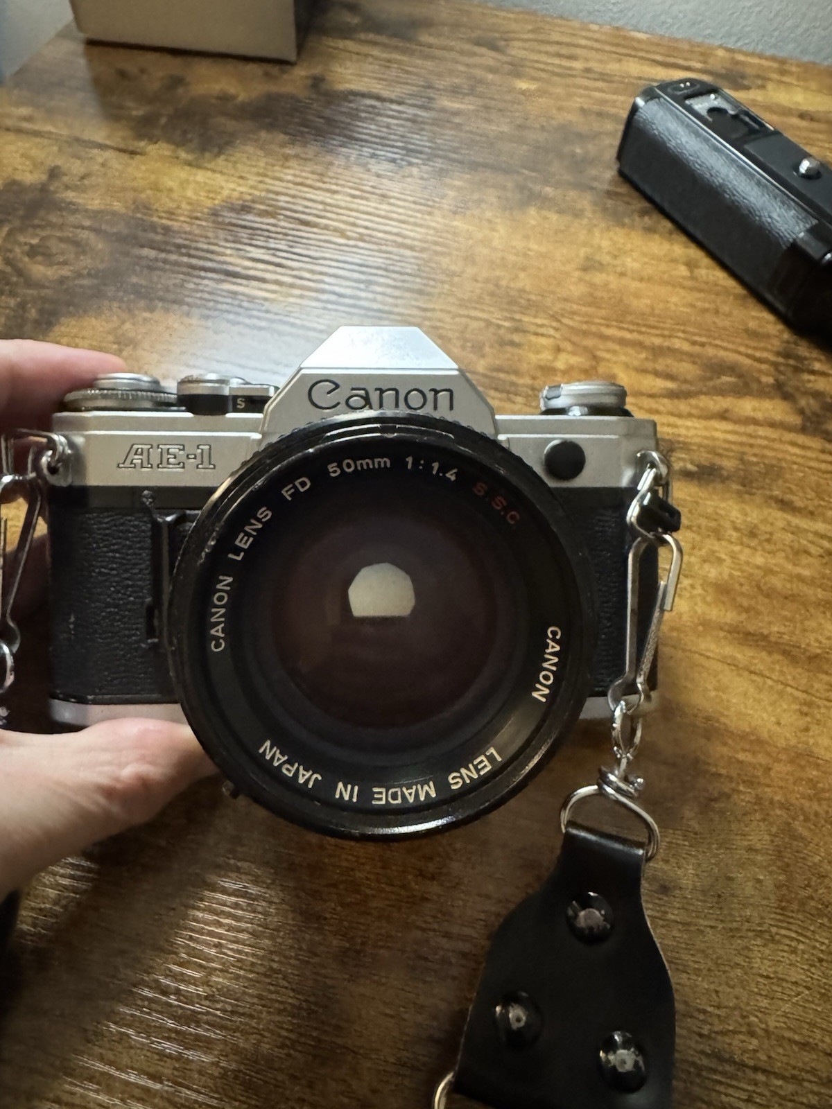 как выглядит Canon AE-1 35mm SLR Film Camera FD 50mm f1.4 S.S.C. Lens W Extras фото
