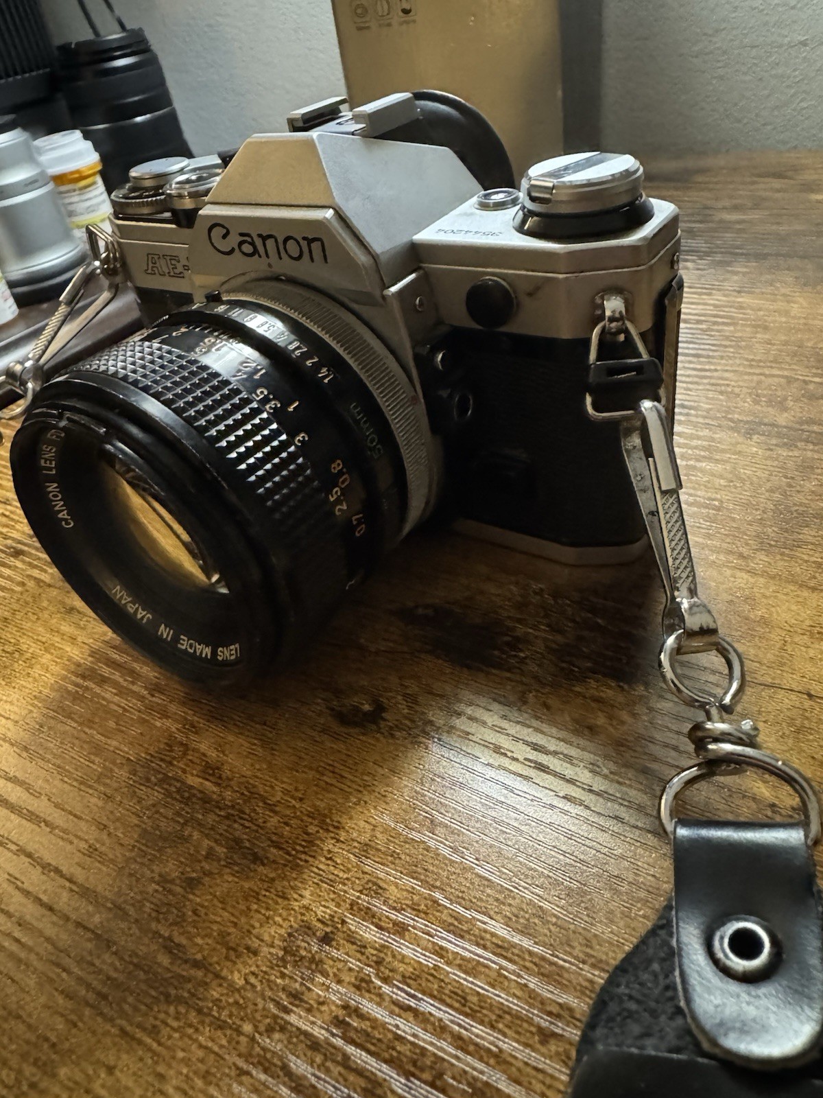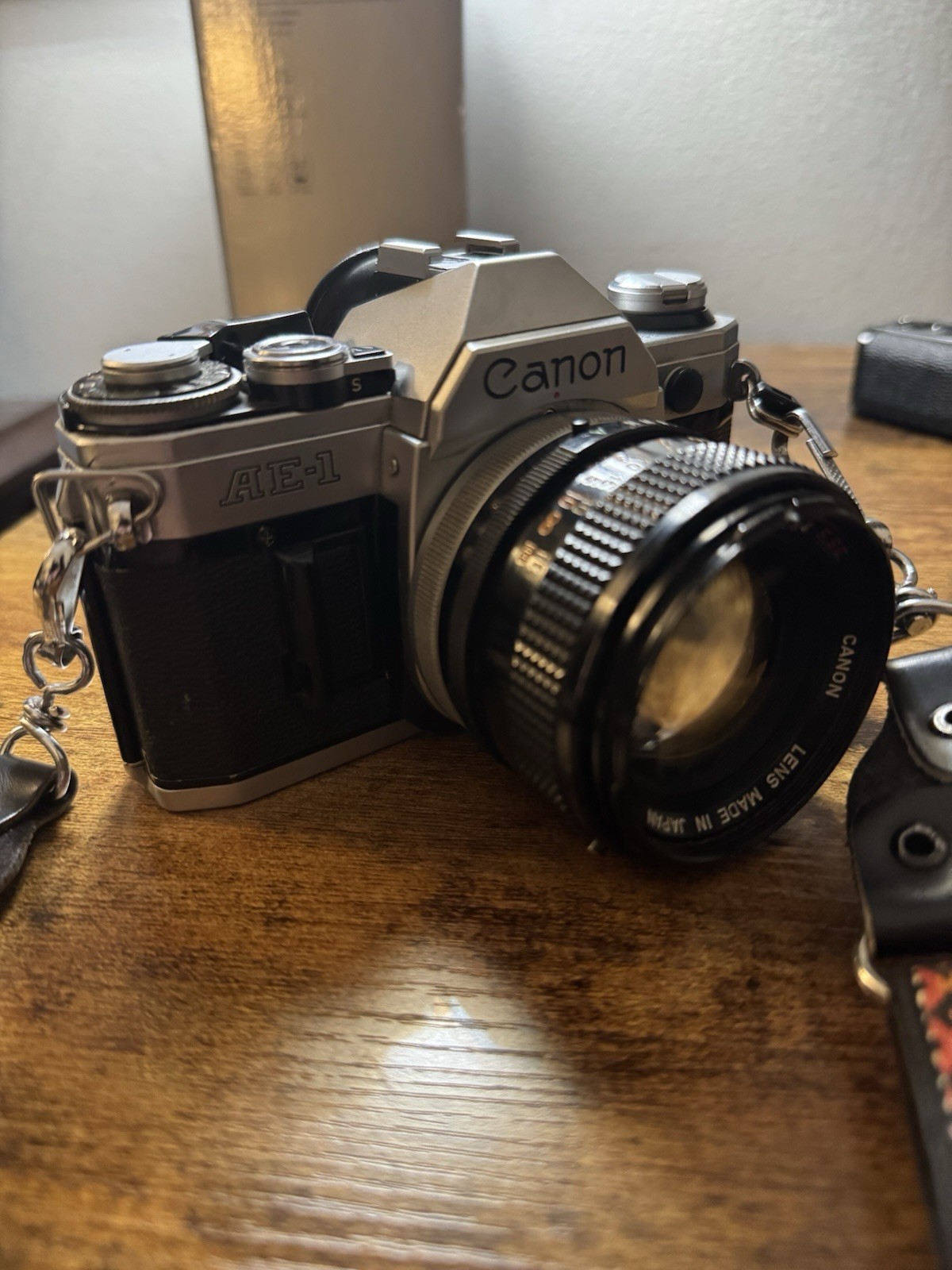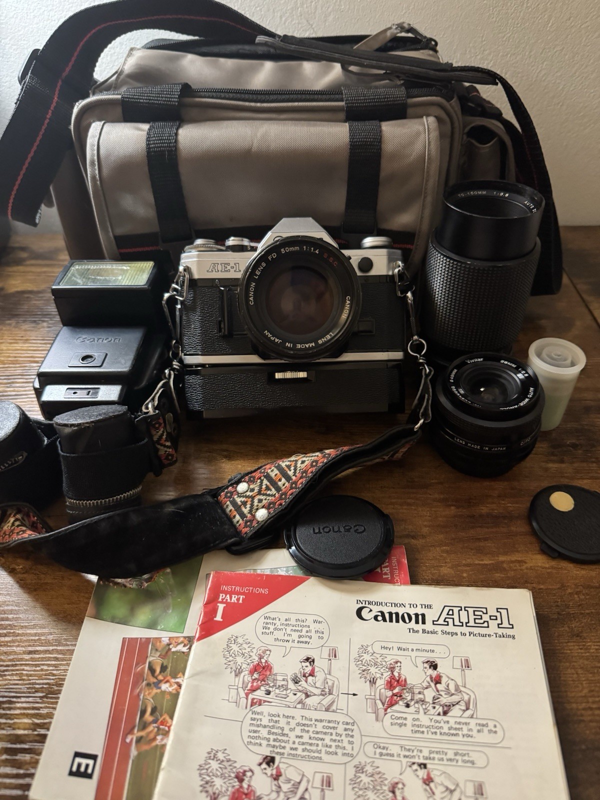 Canon AE-1 35mm SLR Film Camera FD 50mm f1.4 S.S.C. Lens W Extras