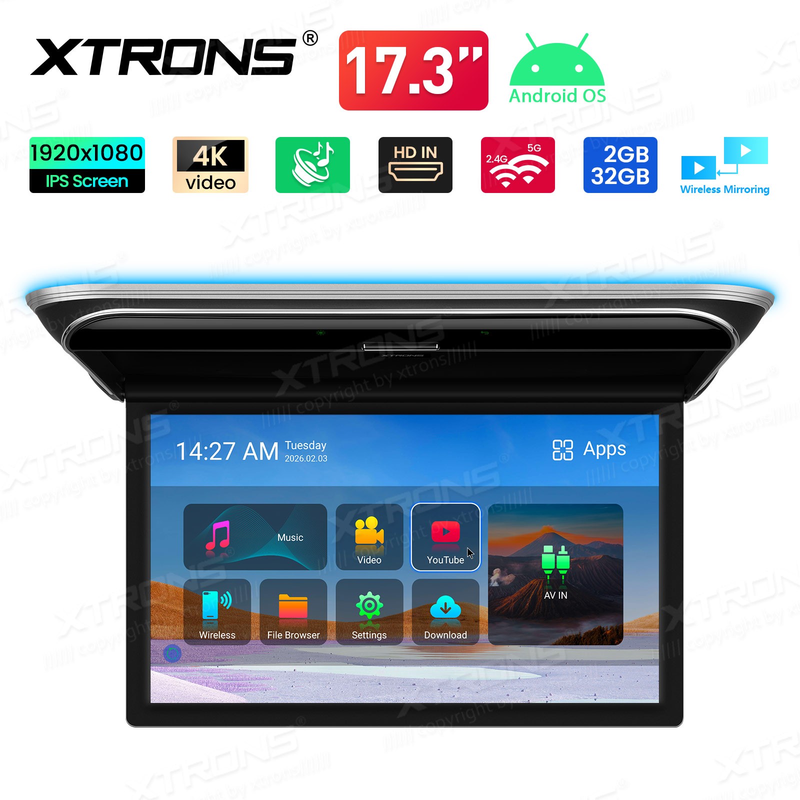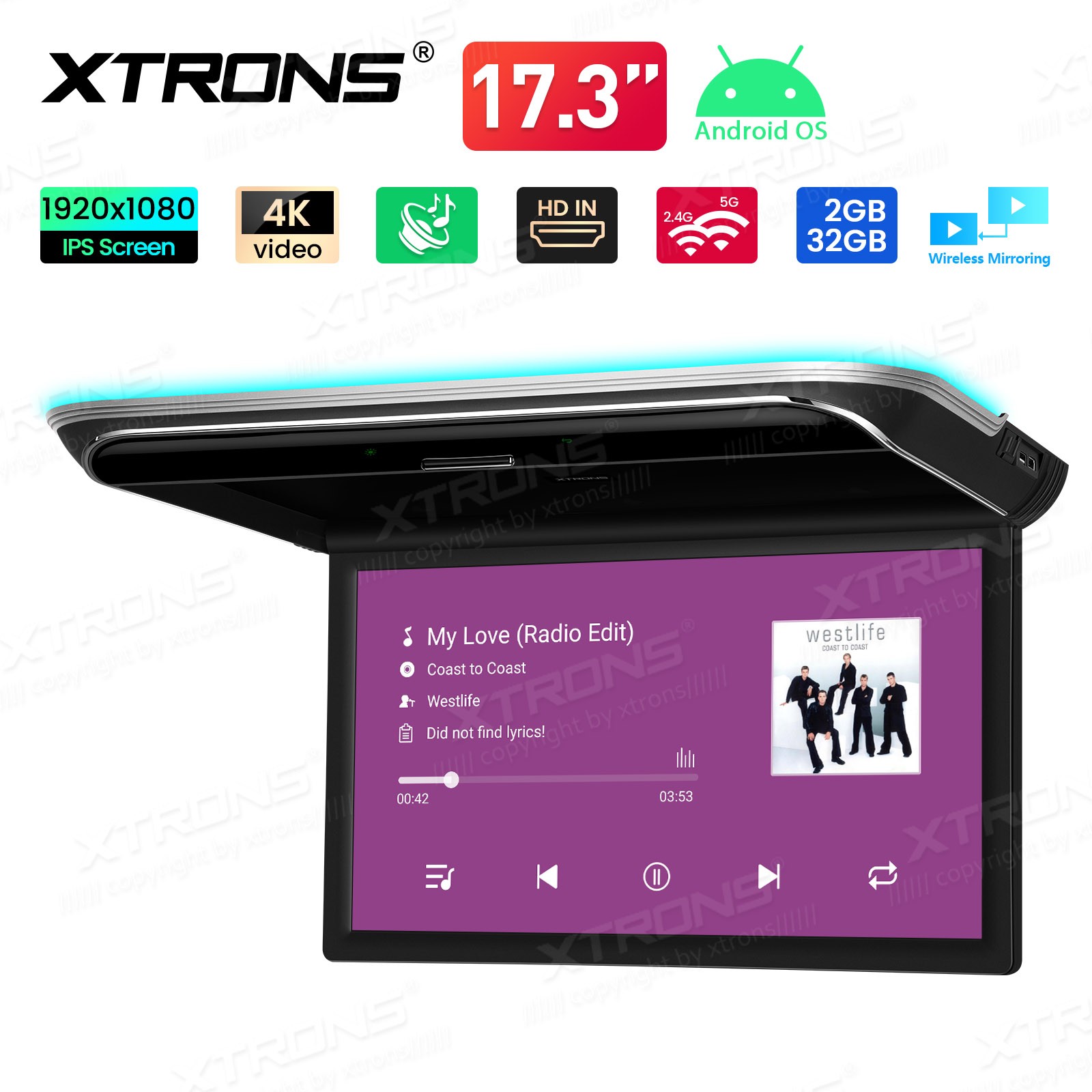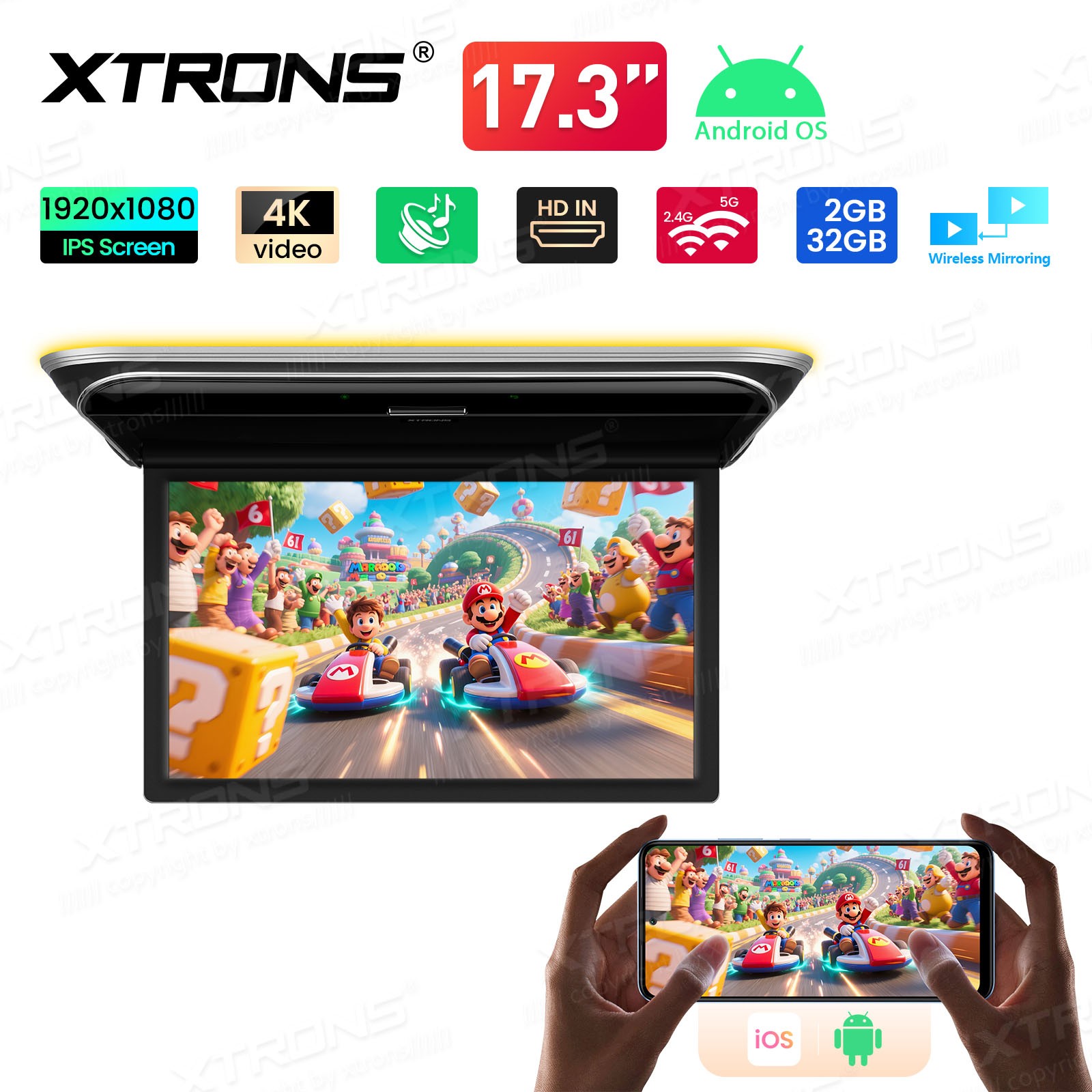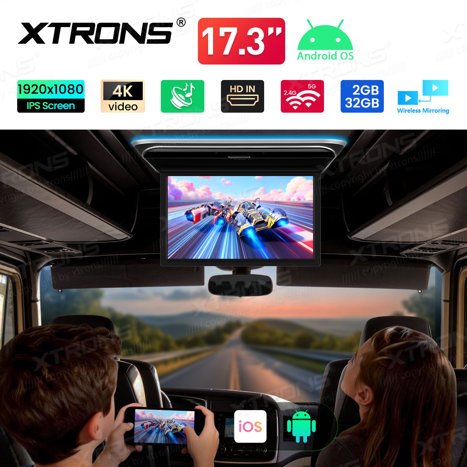 XTRONS 17.3 Android Roof Flip Down Monitor 1080P Screen for Bus 2GB 32G HDMI