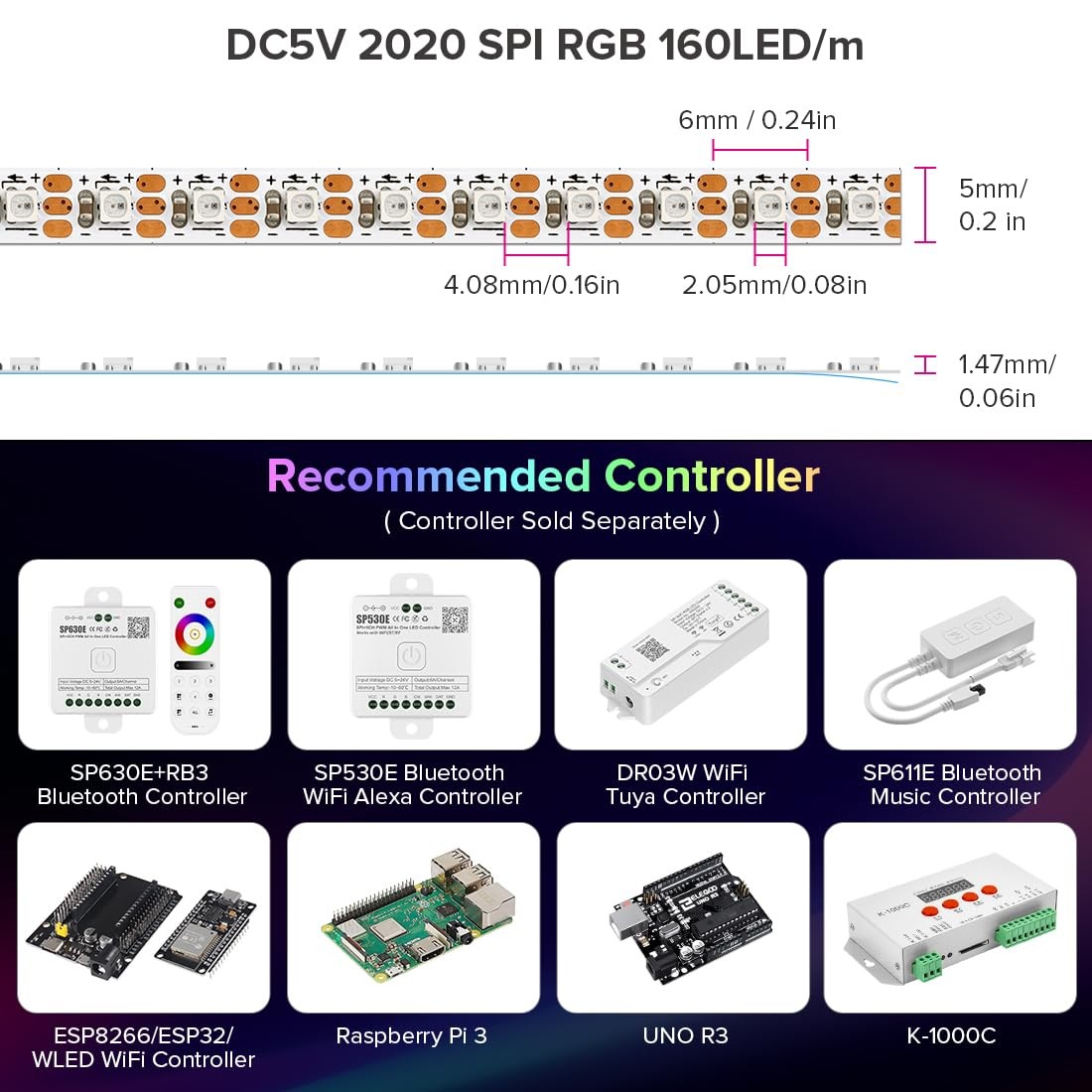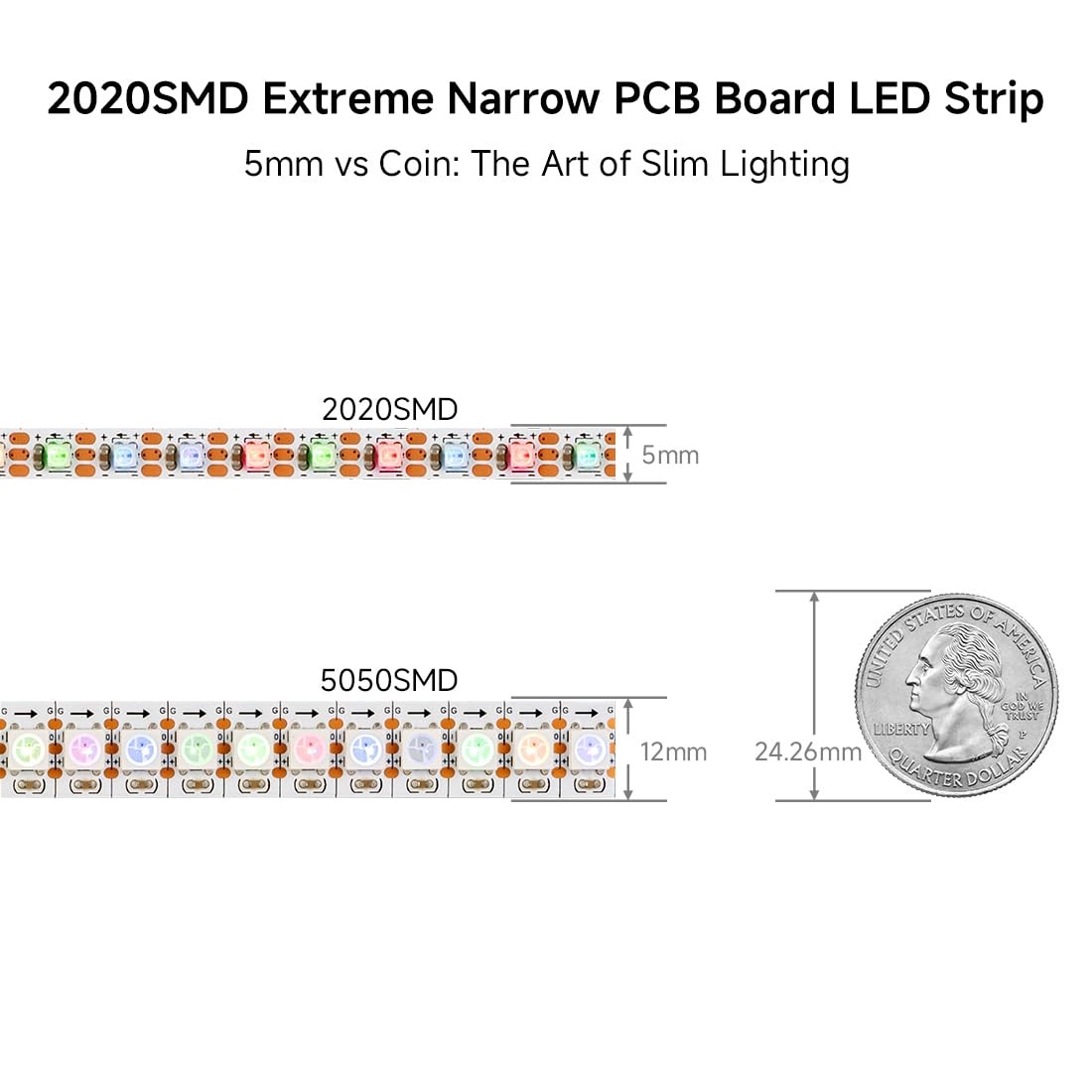 BTF-LIGHTING WS2812B IC RGB 5mm Ultra Narrow LED Strip 3.2FT, Multicolor