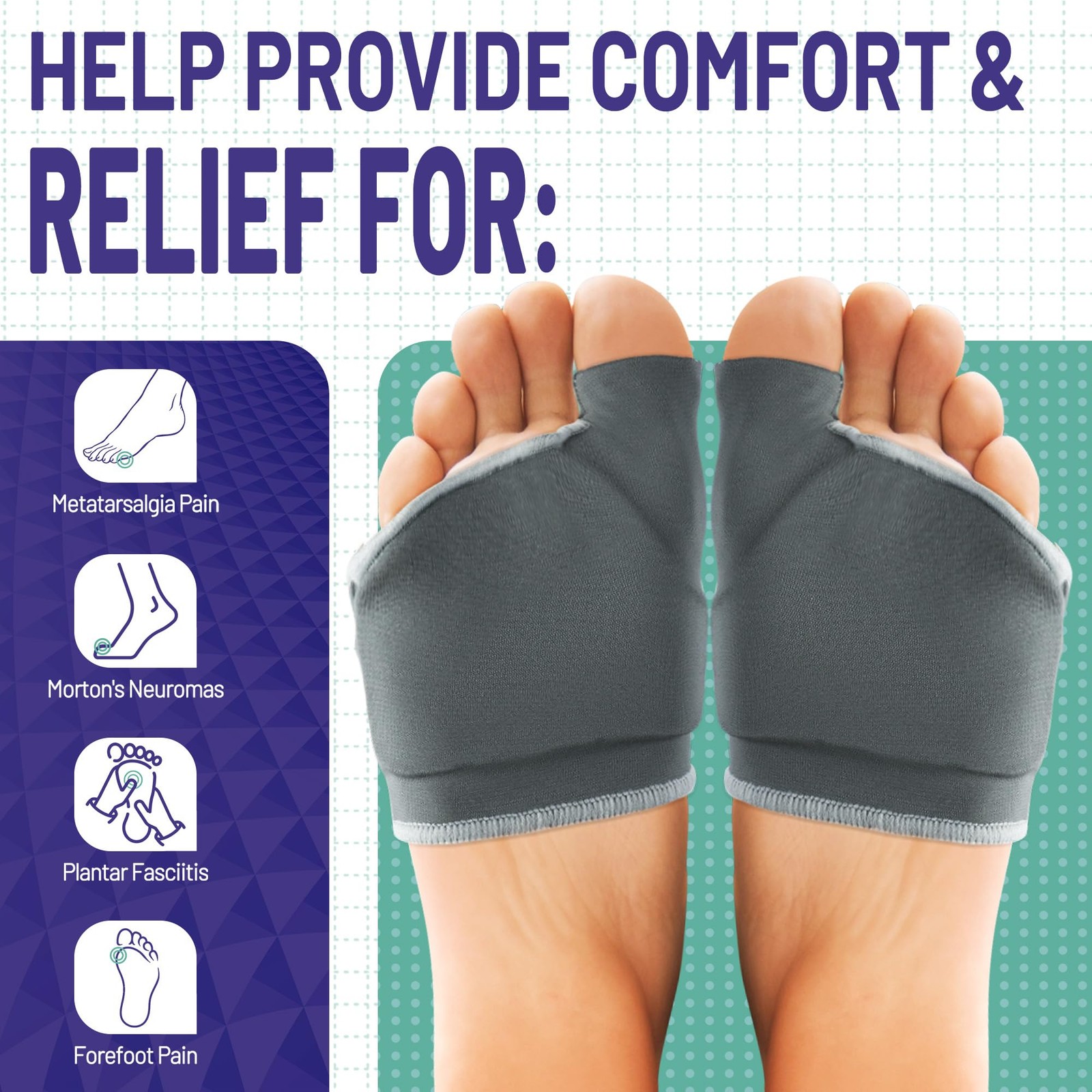 Orthopedic Metatarsal Pads,Ball of Foot MIDDLE:WOMEN 7-9 /MEM 5-7 , Gray