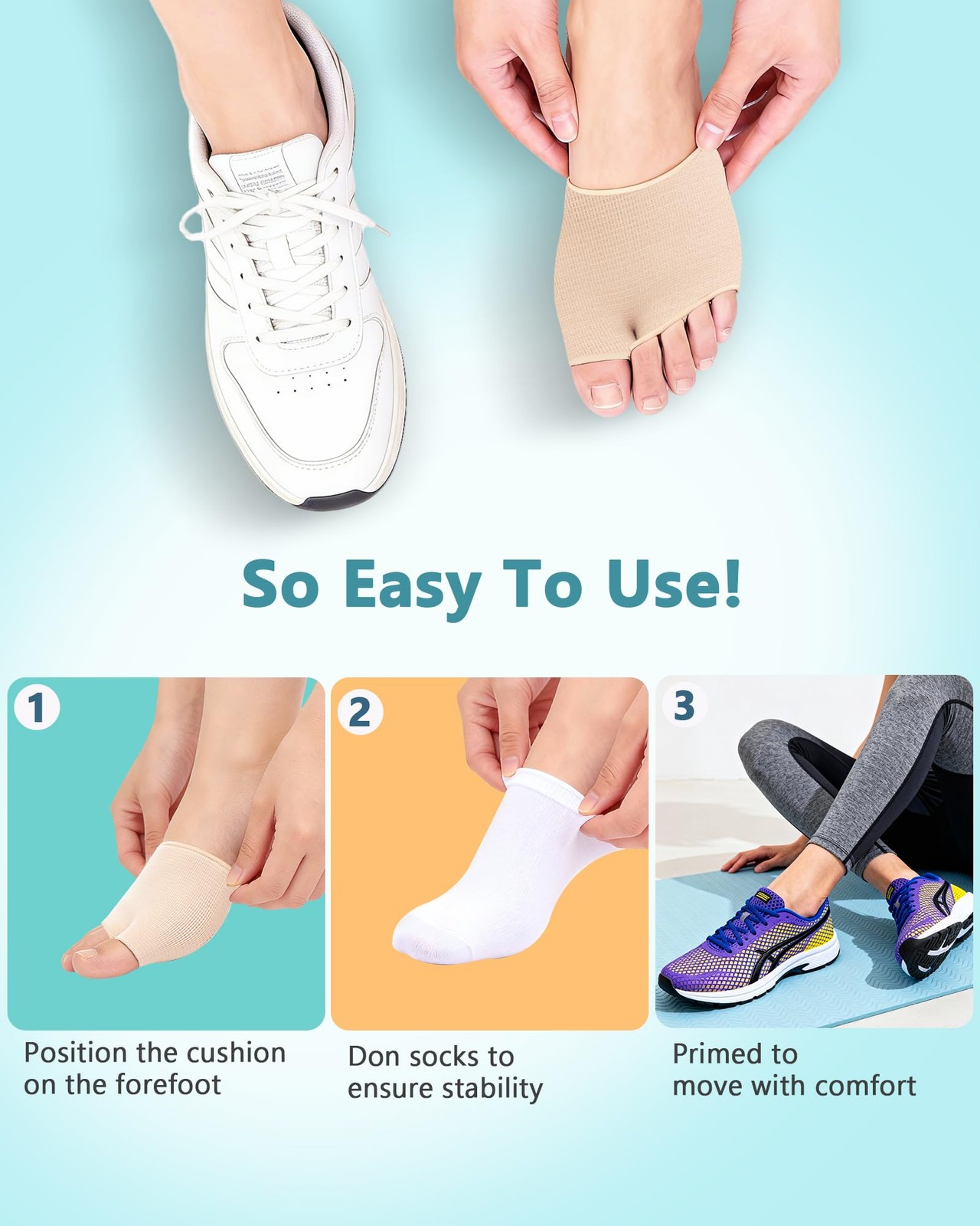 как выглядит 2 Pairs Metatarsal Pads - Gel Ball of Foot Cushions for Women Large, Beige фото