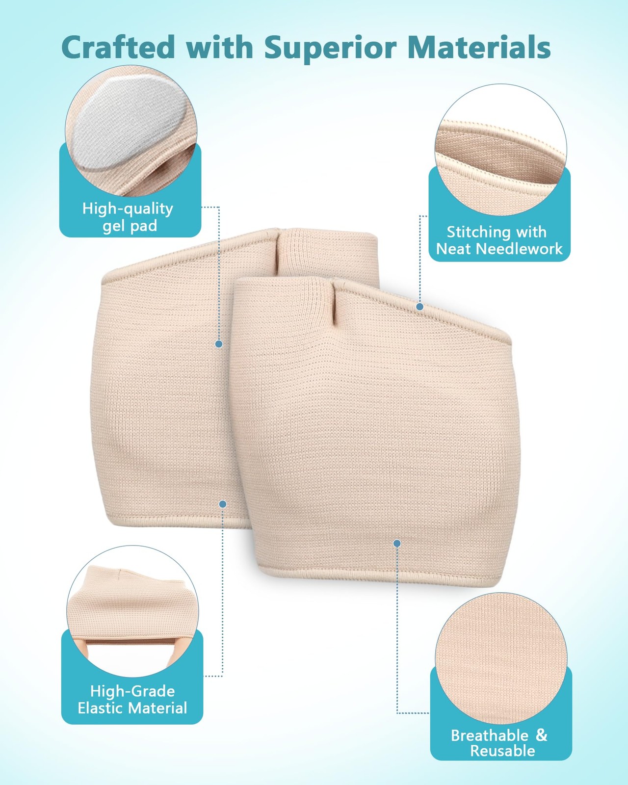 2 Pairs Metatarsal Pads - Gel Ball of Foot Cushions for Women Large, Beige