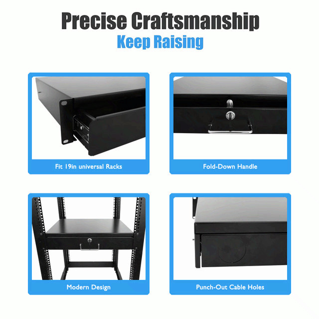 3U Rack Mount Drawer 19 Inch Lockable DJ Case Sliding Storage Shelf