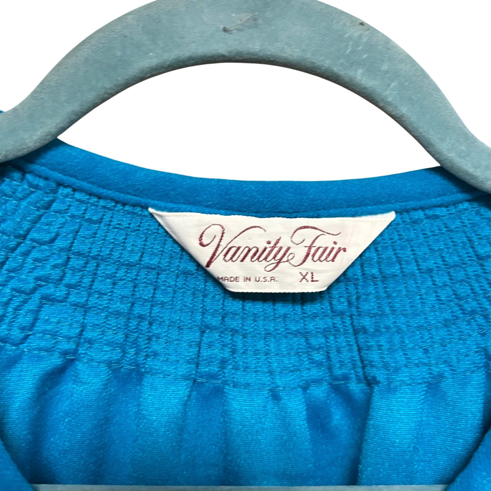 Vanity Fair Nightgown Women XL Blue Vintage Smocked Long Sleeve Loungewear Dress