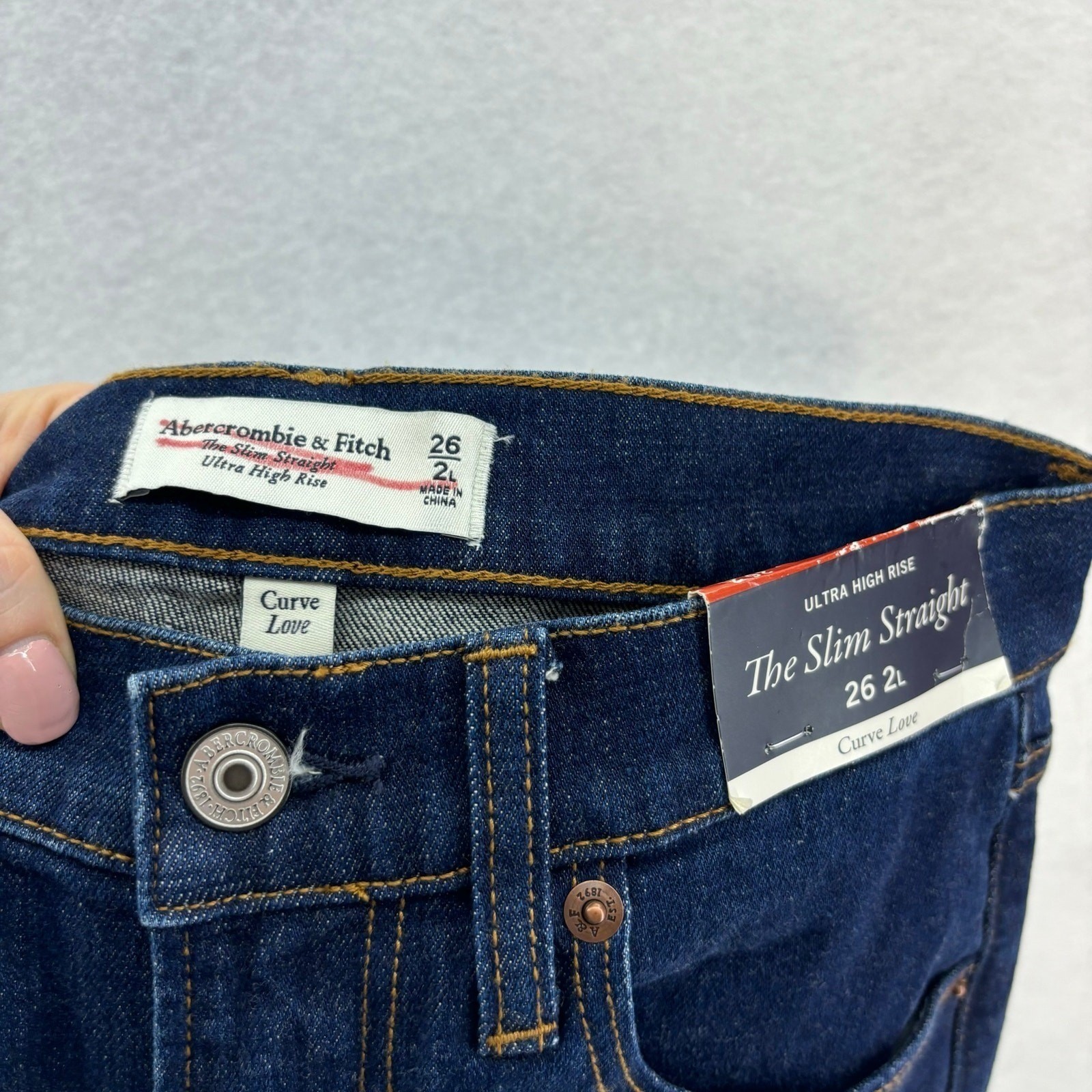 как выглядит Abercrombie Fitch Curve Love Slim Straight Jeans size 26 2L Ultra High Rise фото