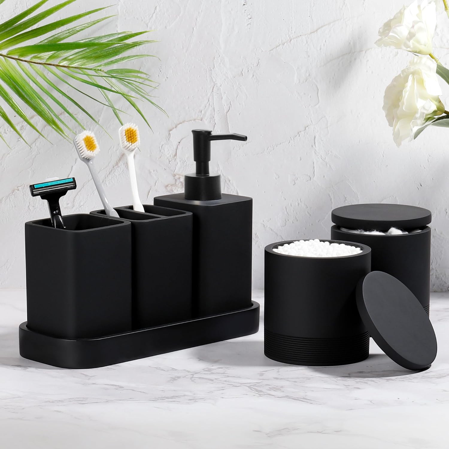 Bathroom Accessories Set, 6 Piece Bathroom Set with Toothbrush Holders, Soap Dis