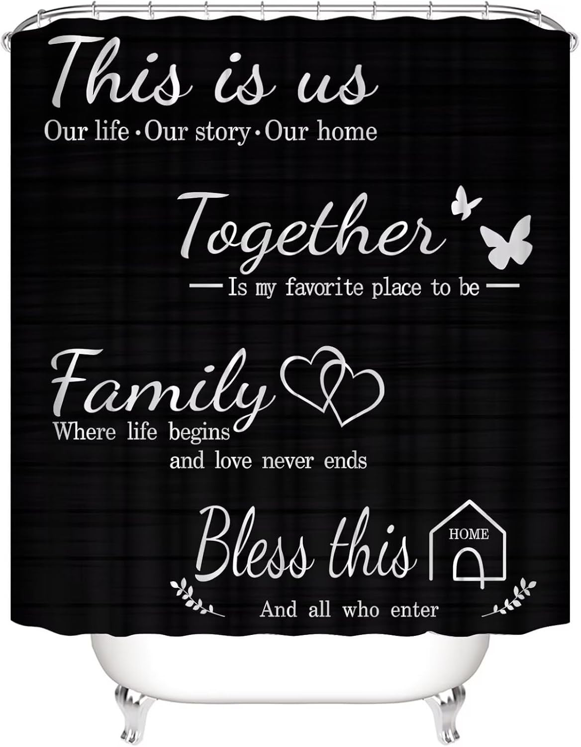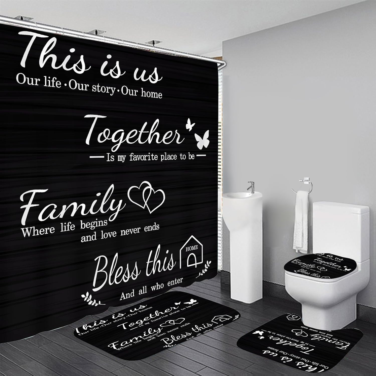 Family Shower Curtain Set Black Home Bathroom Set with Shower Curtain and Rugs a