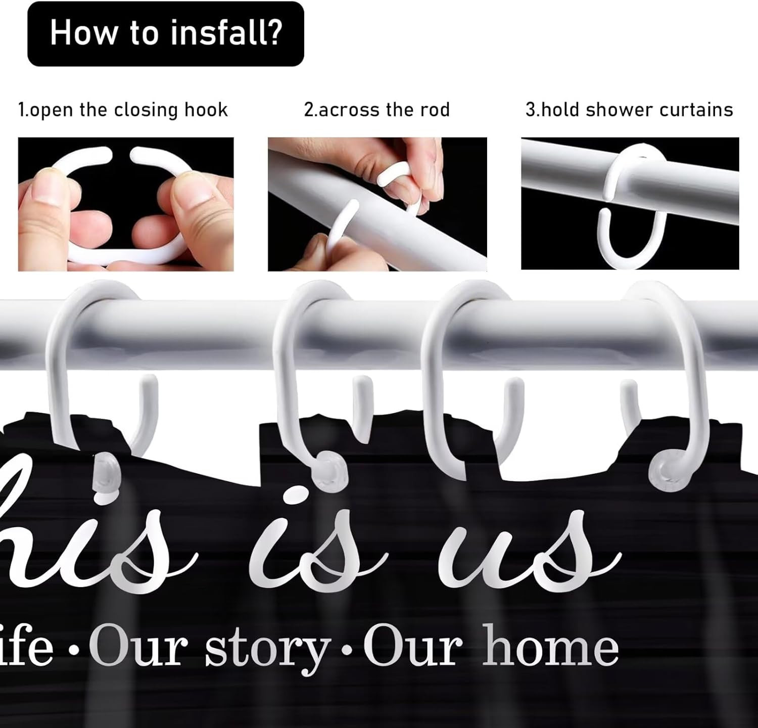 как выглядит Family Shower Curtain Set Black Home Bathroom Set with Shower Curtain and Rugs a фото