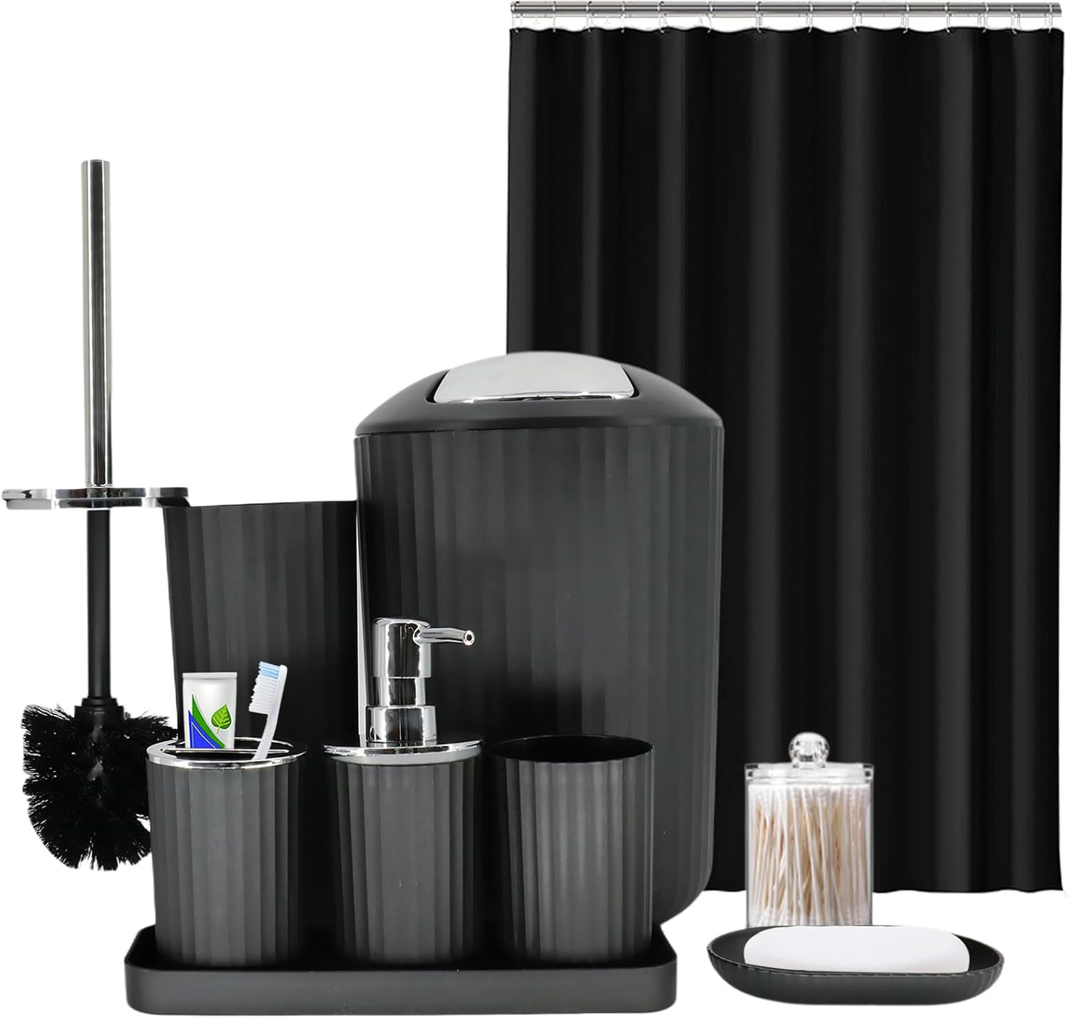 Black Bathroom Accessories Set, 9-Piece Bathroom Accessory Sets Complete with Tr